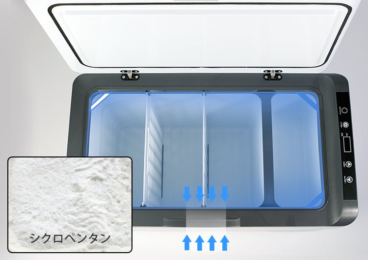 シクロペンタンは保冷性に優れながら、地球温暖化係数がCO2と同等レベル。環境にもすごく優しい素材です。