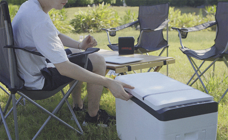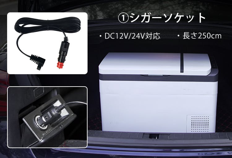 ポータブル電源からも給電OK。シガーソケット給電ケーブルを使用して、運動会やアウトドアでも冷えたドリンクが飲み放題!
