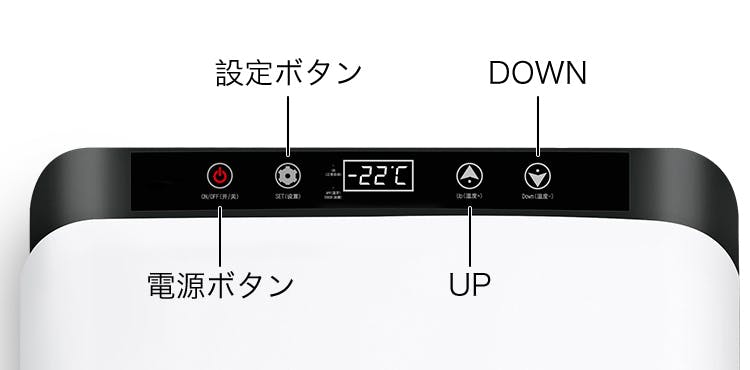 電源オンの状態で設定ボタンをタッチ。ディスプレイの数字が点滅を始めたらUPまたはDOWNボタンで設定してください。