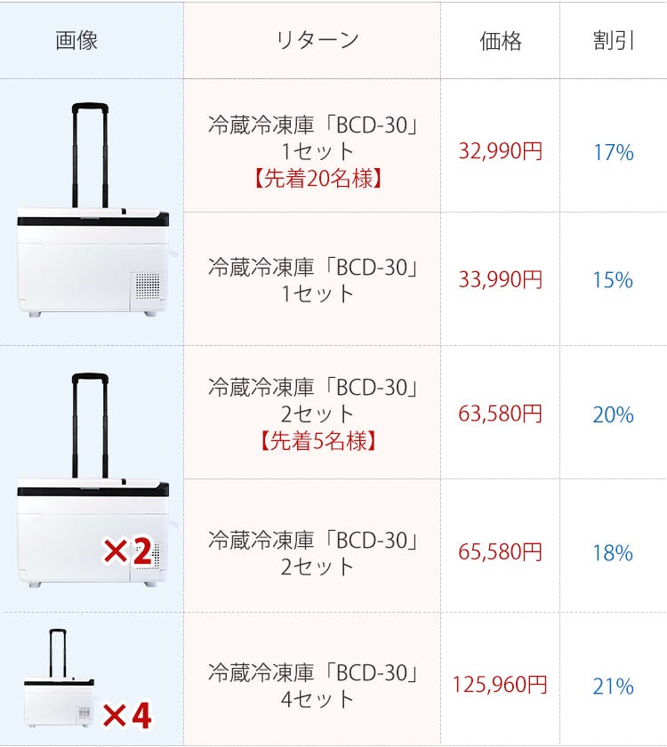 2020/12/14 09:26unsyuでございます。冷蔵冷凍庫「BCD-30」へのご支援、誠にありがとうございました!本プロジェクトは12/11(金)目標金額を達成し、無事に終了いたしました(*^^*)ご支援いただきました皆さま、本当にありがとうございます。発想は予定通り、来年2月末までの発送を予定しております。発送まで今しばらくお待ちくださいませ!今後ともunsyuをよろしくお願いいたします。 もっと見る