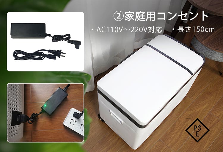 家庭用コンセントAC110V~220Vにも対応(PSE認証取得済み)。