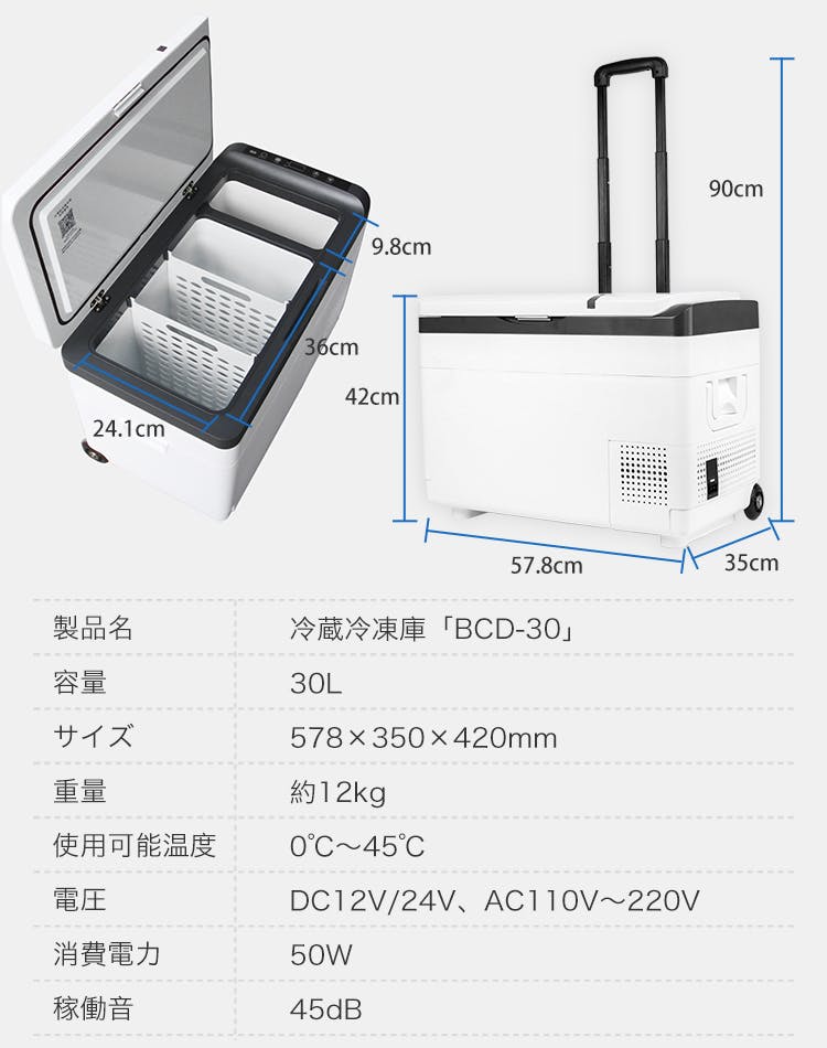 「BCD-30」は、車載に特化した冷蔵冷凍庫。