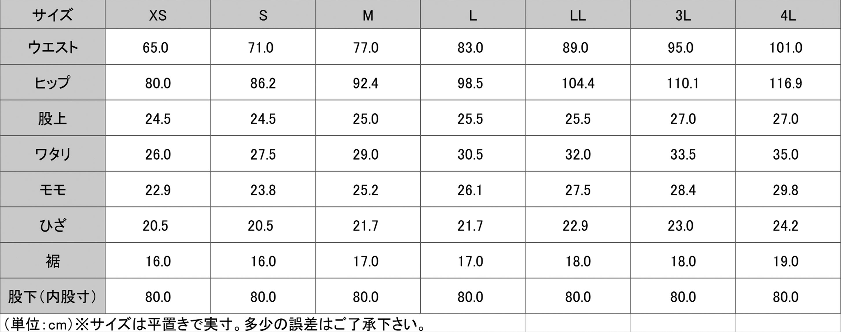 ◆サイズ表(単位:cm)