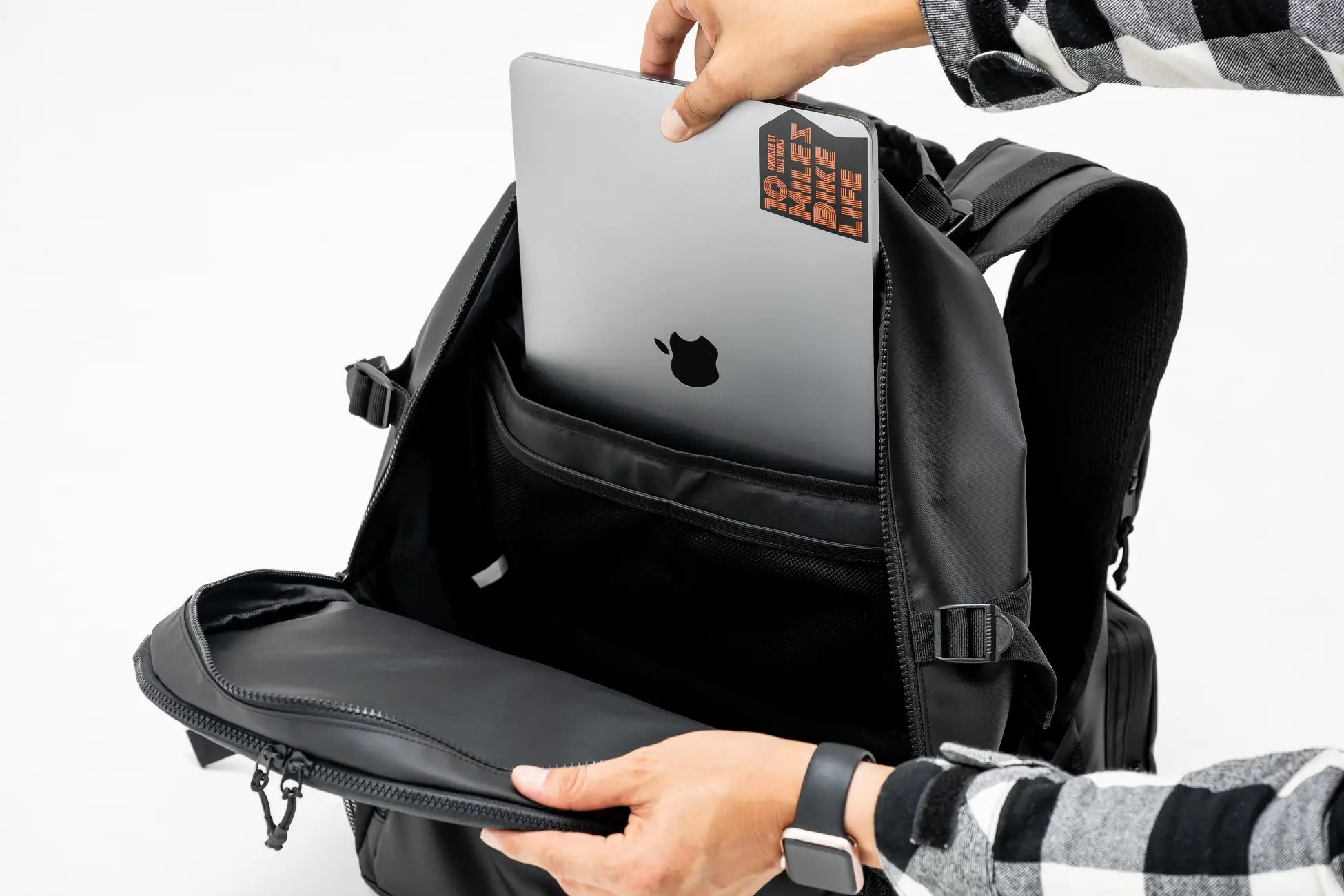 リュックは25Lの容量を確保しつつもスッキリとしたシルエットでシートバッグと干渉せず(リュックが広がるほど大きい物を入れると干渉する可能性はあります。)、且つベスト部分にはプロテクターが内蔵可能。アジャスター付きなので、胸囲80cm-105cmまで調整可能です。体にフィットさせる事で肩への負担を軽減し、リュックの重さも感じにくくなります。背負うだけで知らないうちに安全対策をしつつ、プロテクター付きのトップスを着用しなくて良いので「ちょっとそこまで」好きな服を着ながら移動が可能になっております。