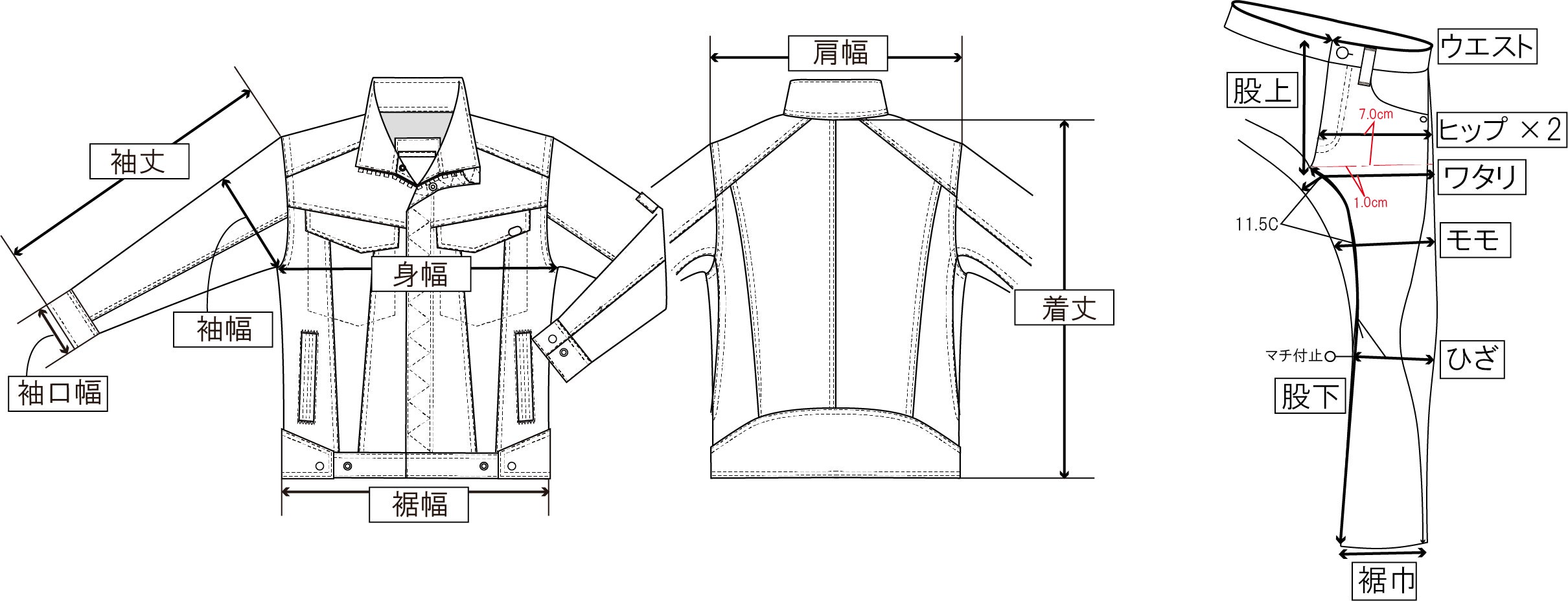 【ライダー専用デニムウェア】は、ライディング姿勢を計測し立体構造にてパターン設計しています。