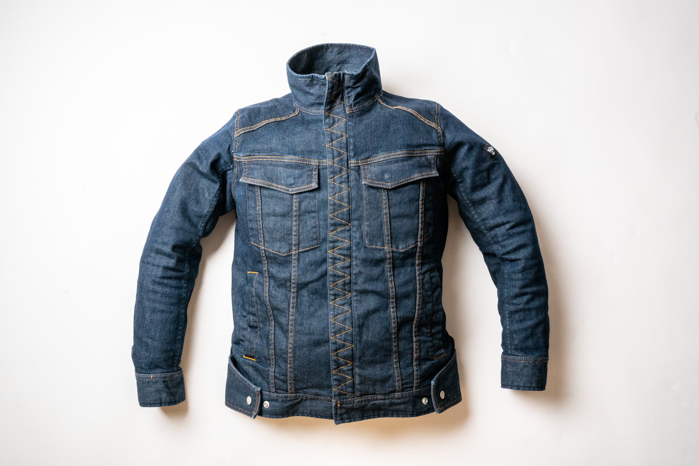 通常のデニムジャケットは金属のボタンやファスナーが剥き出しですが、愛車のタンクを傷つけない様に金属パーツを効率的に隠しています。