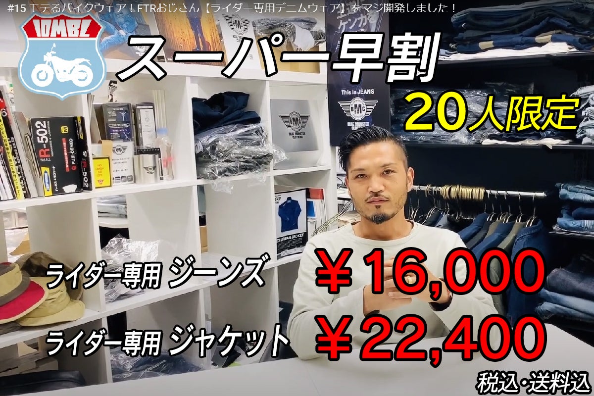 スーパー早割で上下をご支援頂けると・・・なんと!【ライダー専用デニムウェア】が税込38,400円なんですっ!!!!!勢いでタイプしちゃいましたが・・・これ、完全日本製で・・ここまでこだわってるのに・・・安過ぎですかね_:(´ཀ`」 ∠):