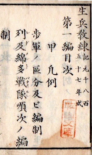 2020/10/26 19:27長門練兵場蔵板のオランダ1857年式歩兵操典長州藩が洋式兵学を導入するために翻訳したオランダ軍の歩兵操典です戦術は幕府やその他が採用したミニエー銃の物ではなくゲベール銃の戦術でしたが、これで戊辰戦争を乗り切りました佐山文庫の朱印が押されており、京都の佐山文庫の旧蔵書物のようです もっと見る