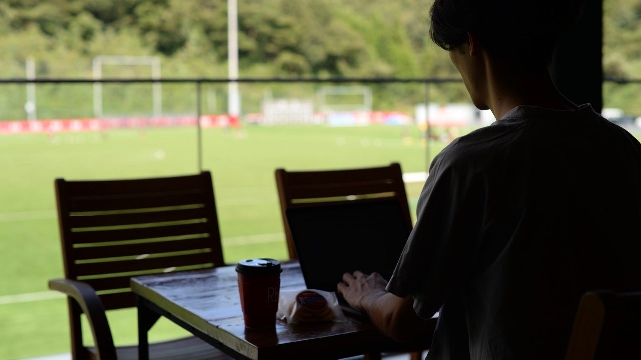 私たちの「RED & BLUE CAFE」は、いわきFCパークの3階にあります。選手たちが繰り広げる試合や練習、美しい芝生を見ながらパンケーキや軽食・自家焙煎のコーヒーが楽しめるいわきFCオフィシャルカフェとして、2017年のオープン以降、数多くのサポーターの皆さんや地元の方々にご利用いただきました。