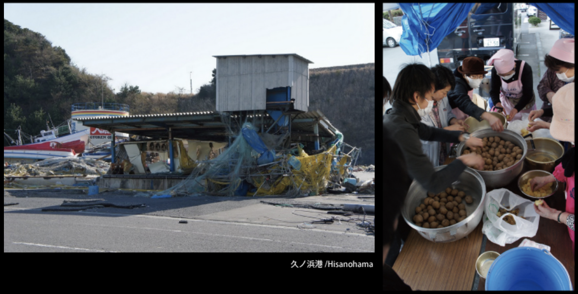 震災直後、甚大な被害のあった久之浜での炊き出しの様子