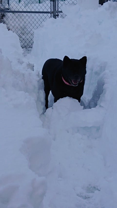 さすがにクロも、雪かきしたランの入口で、ランを眺めるばかりです