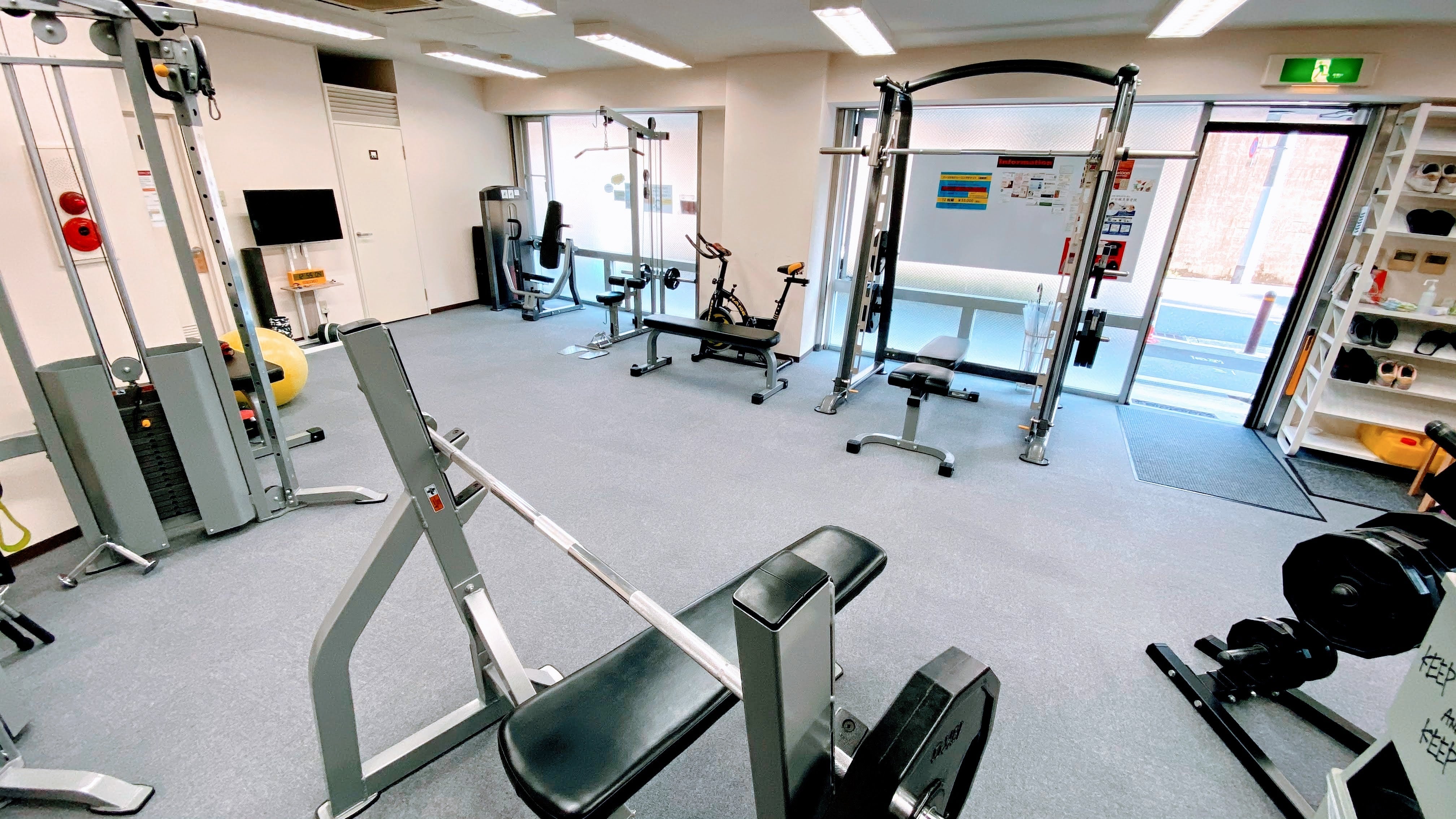 トレーナーが目の届く範囲のコンパクトな広さ。しかしそのコンパクトさからは想像もつかないほど、多様なトレーニングができる空間です。