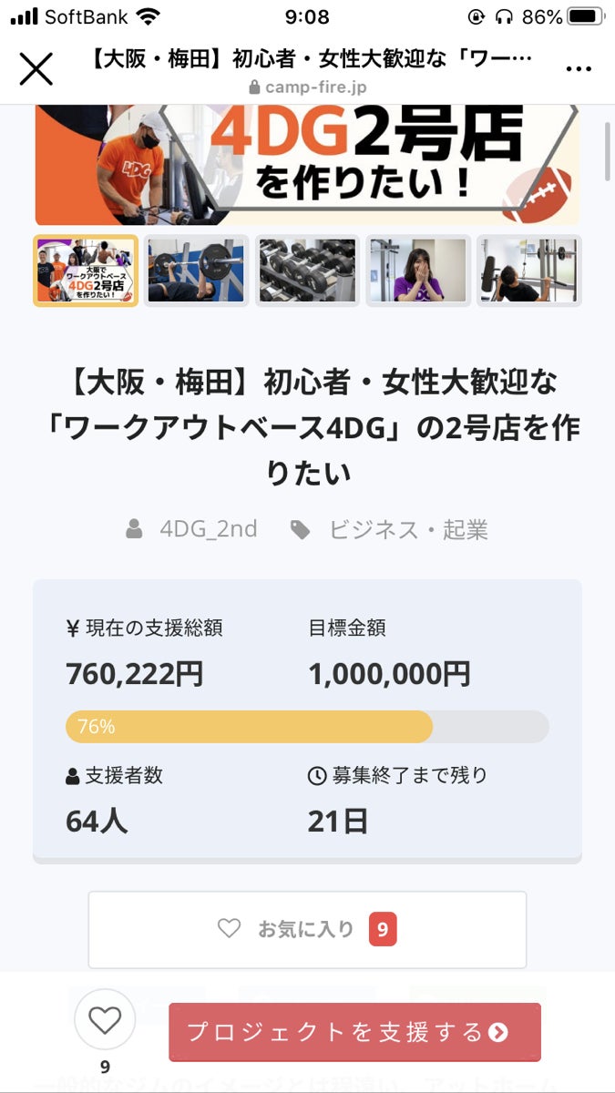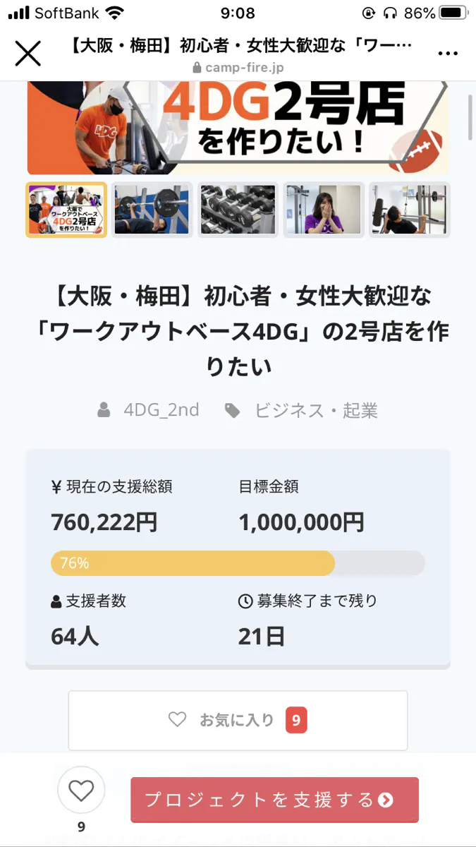 昨年、12月10日からクラウドファンディングをスタートし、現在、64人の方から支援して頂き、支援総額76万円を突破しました。