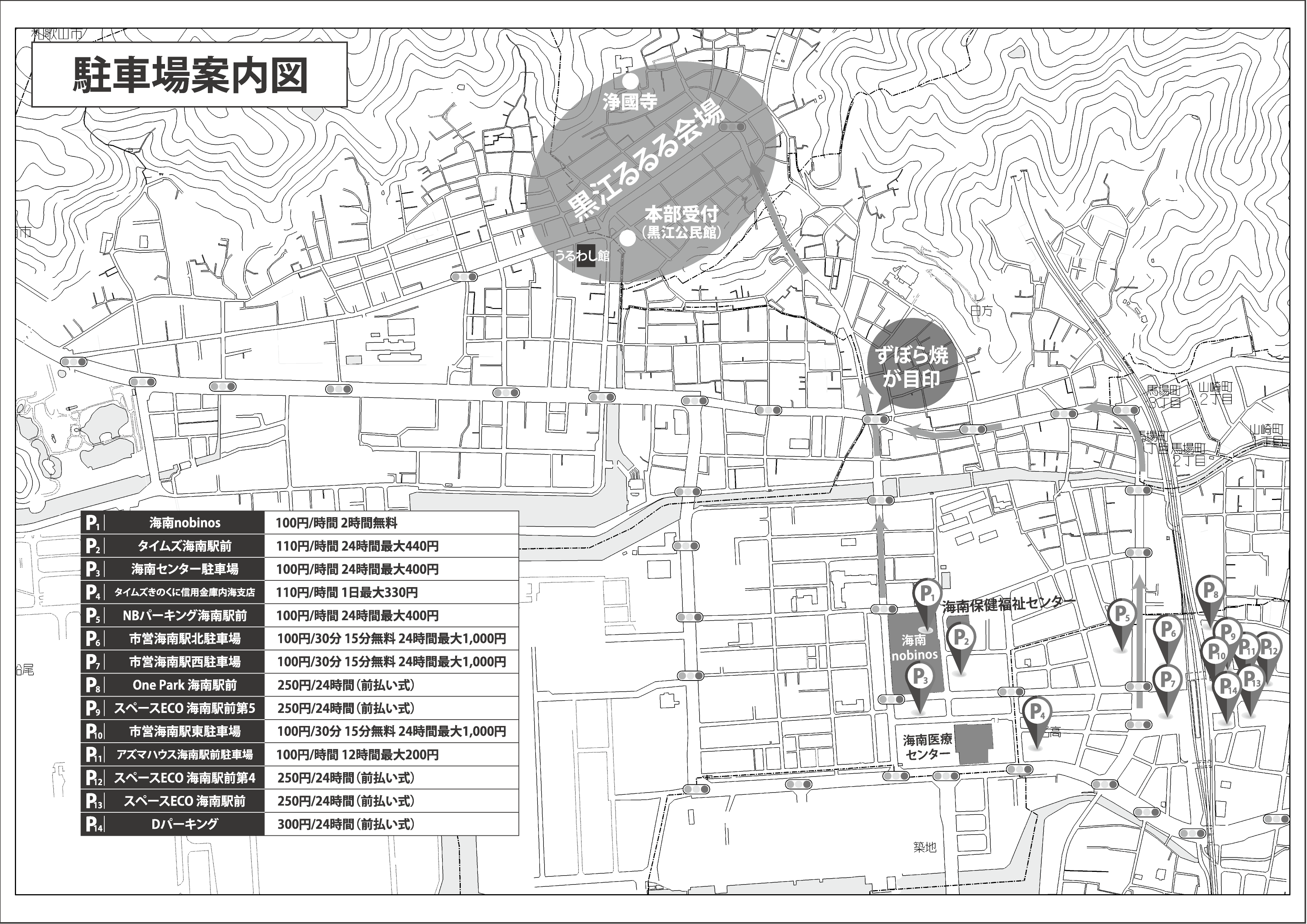 写真は、海南駅周辺・海南nobinos 周辺のコインパーキングの地図です。