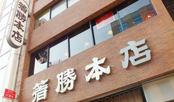 上を見上げると、箸勝本店と書かれた看板があれば、そのビルに入りましょう。