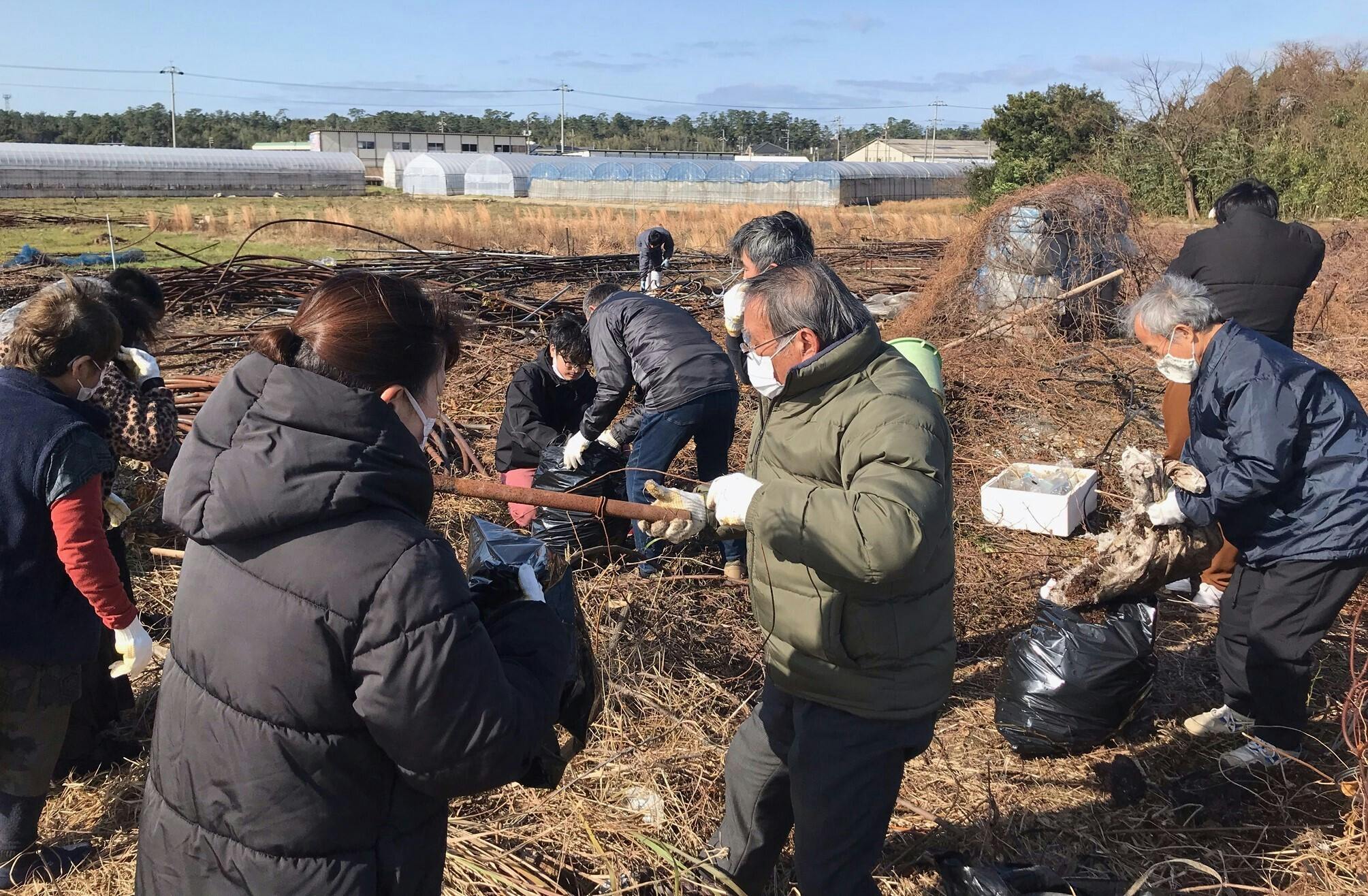 山陰の冬には珍しい朗らかとした陽気だった今週の月曜日(1/25)、当院の高次脳機能障がいデイケアきらりのメンバーさんがドライブがてらバナナ農園予定地を見に来てくれて、片付け作業を手伝って下さいました。脳の病気をされた方の中には健康な人と同じように動ける人がおられますが、実は健康な人よりもはるかにエネルギーを使うことで同じように動いておられます。なので健康な人よりもとても疲れやすく、片付け作業は短時間でと思っていましたが、実際に作業をされると驚きの光景でした。誰に言われるでもなく、皆さんが連携して作業をされ1時間弱を最後まで元気に、そして手際よく取り組まれていました。まさに障がいに関係なく「昔取った杵柄」は健在であり、貧しい時代に幼い頃から畑の手伝いをしてこられた人たちのたくましさに感動するばかりでした。「障がいがあっても本来人間が持っている『生きる力』を自然と発揮できる」そんなバナナ農園を目指していきます!