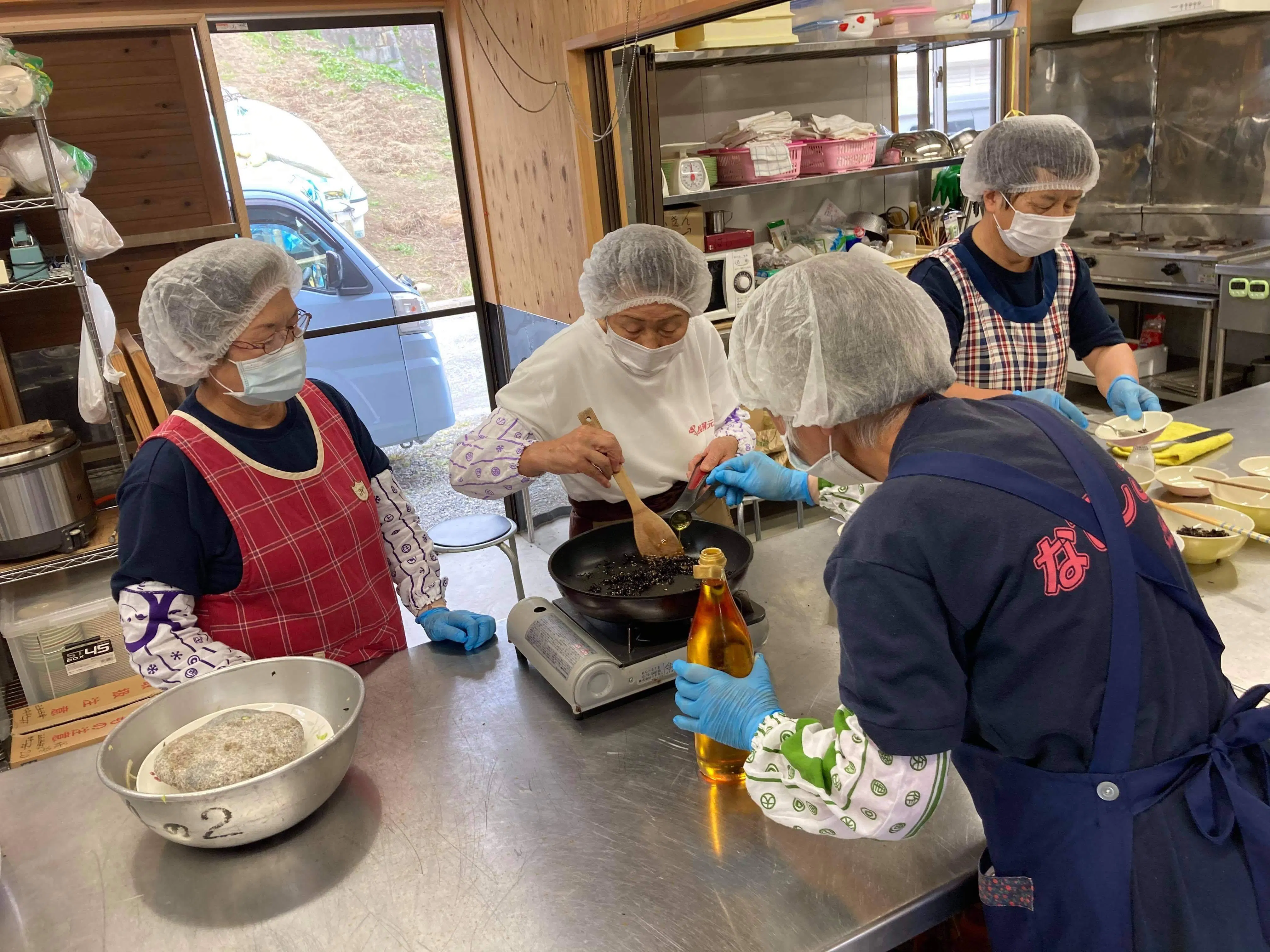写真は、昨日、なでしこ会のおかあちゃん達が集まって新商品の開発をしている様子です。