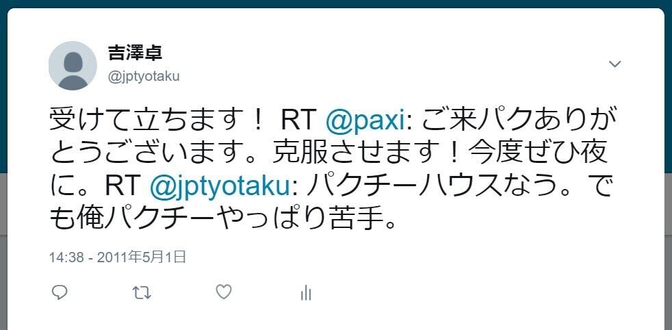 2010年、東京初のコワーキングスペースが松陰神社前から2km弱の経堂農大通り沿いにできました。この「PaxCoworking」は、パクチー文化の殿堂であるパクチーハウス東京と連動したコワーキングスペースでした。2011年5月、当時まだパクチー嫌いだった私が、お店のランチタイムにビールだけ飲んで帰った経緯をツイッターに投稿したところ、オーナーの佐谷恭さんから「パクチー、克服させます!」というレスポンスが速攻戻ってきたのです。これがきっかけで、PaxCoworkingに出入りするようになり、パクチーにいざなわれて、コワーキング文化に触れることになりました。