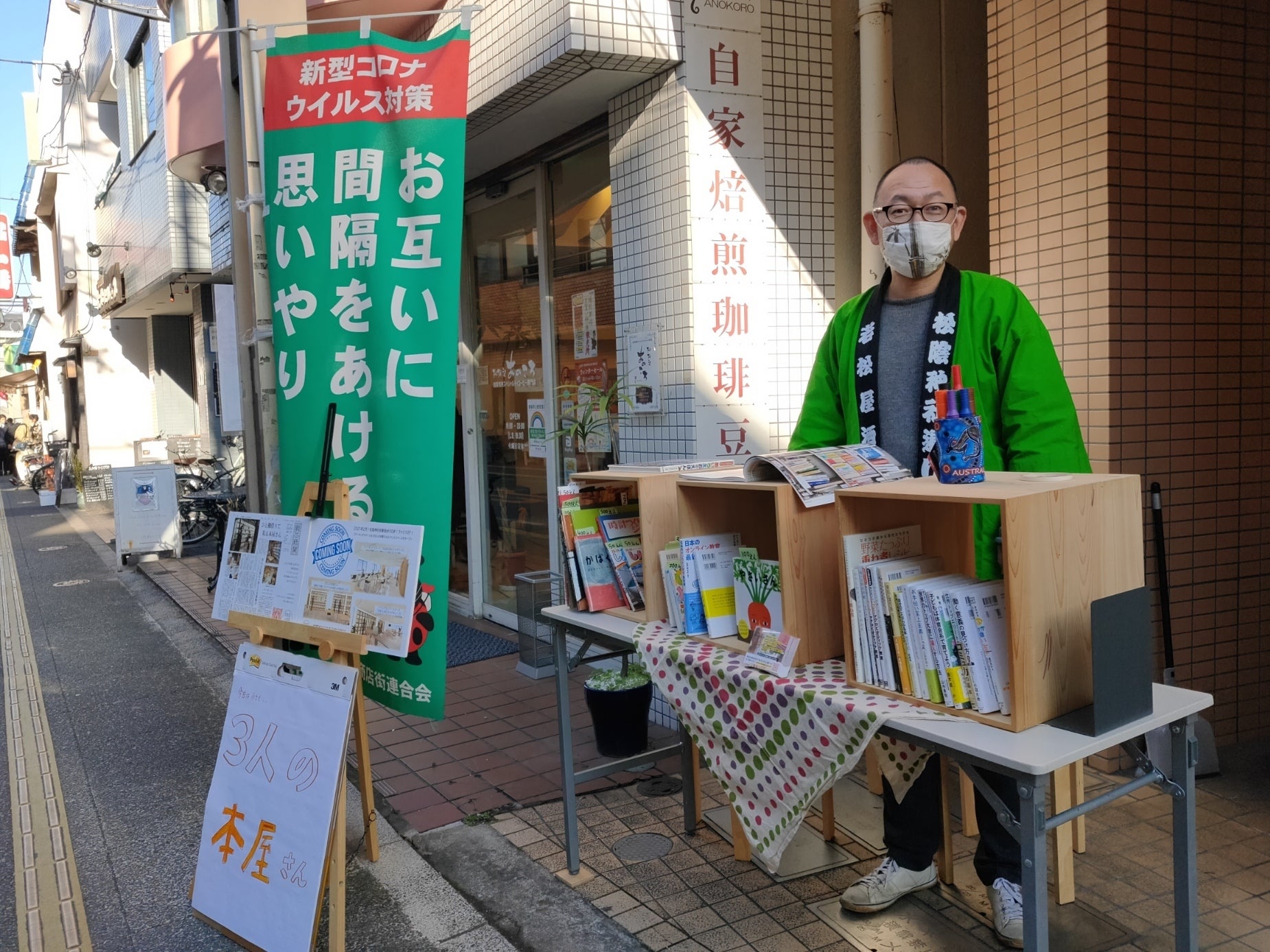 昨日12/6は、松陰神社通り商店街で「みちあそび」が開催されたのにあわせて、出店場所のお向かいに、露店を出して道行く皆さんに宣伝を行いました。