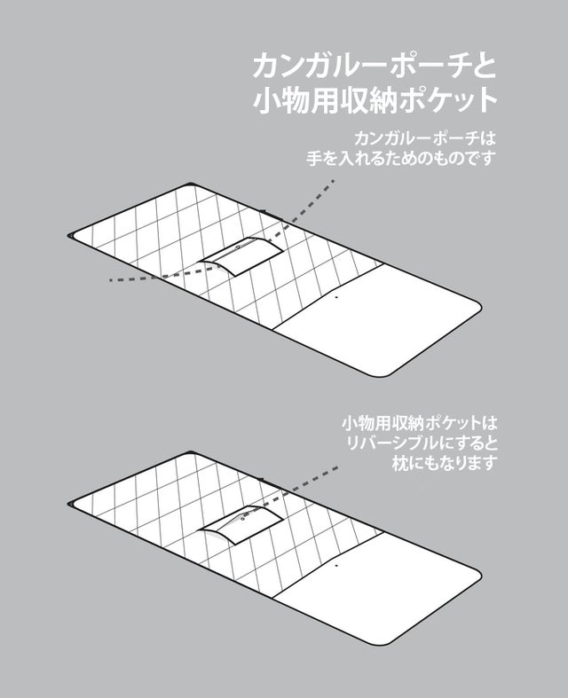 ブランケットを利用している時に紛失しない様に本体に収納できるジッパー付きポケットが横についています。取り外すことも可能です。