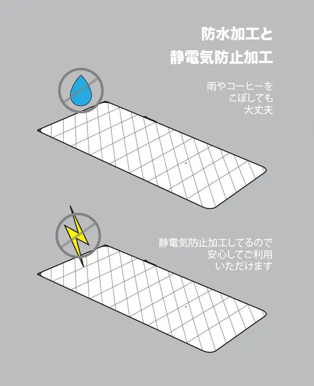 また、防水と静電気防止加工が施されています。