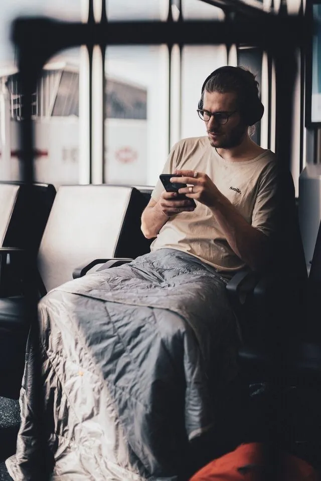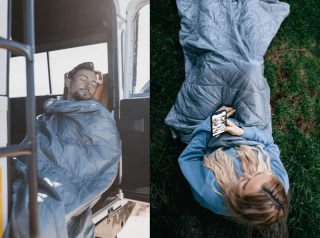・長距離バスや機内で利用しています。スナップボタンを留めて寝袋のようにすると、多少動いてもズレなくて重宝してます。布地が擦れても、シャリシャリなど音が出ないのも気に入っています。(40代 男性)