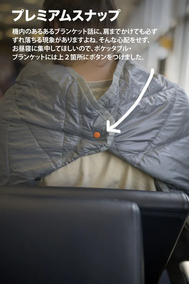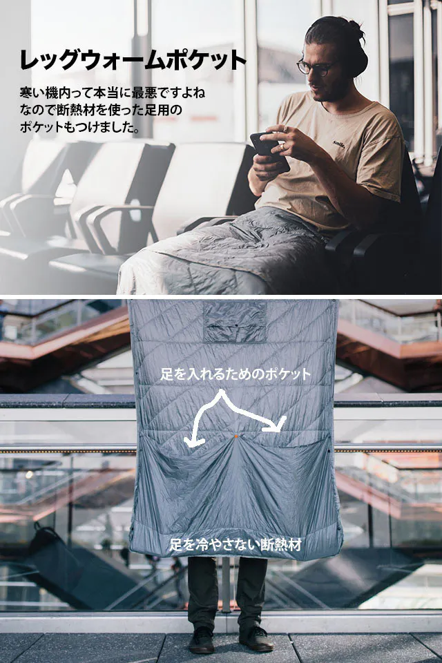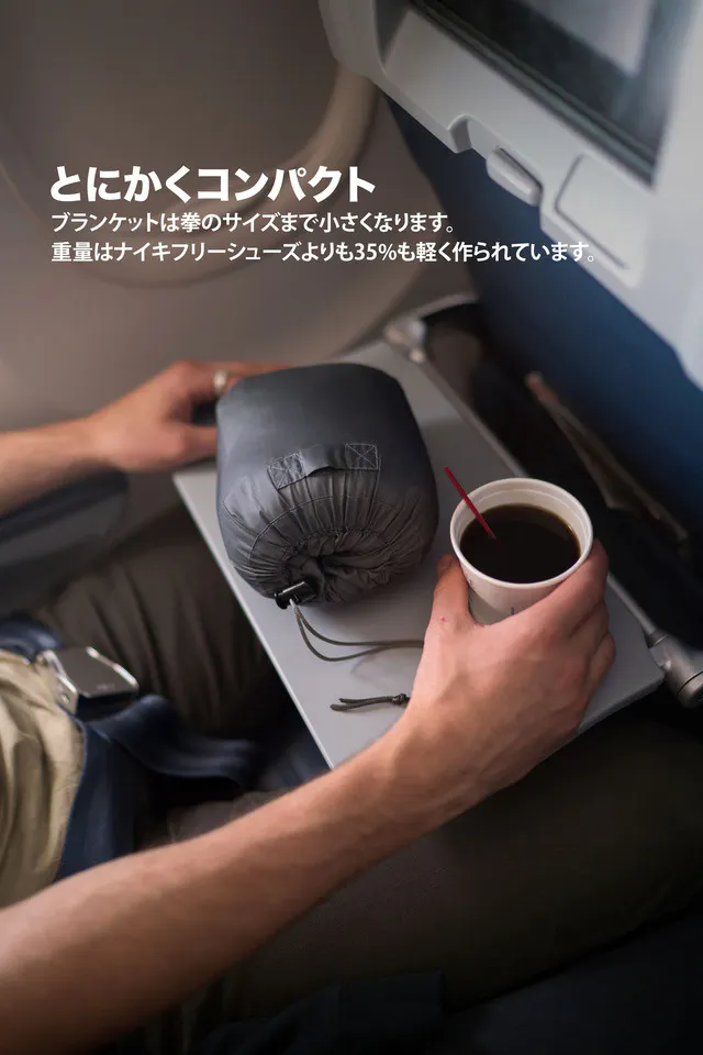 今まではブランケット(毛布)を持ち運ぶなんて現時的ではなかったけど、素材の進化と、僕たちのアイデアで、みんなの移動中の時間に「快適」をお約束します。