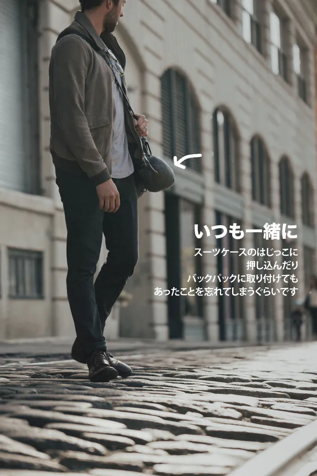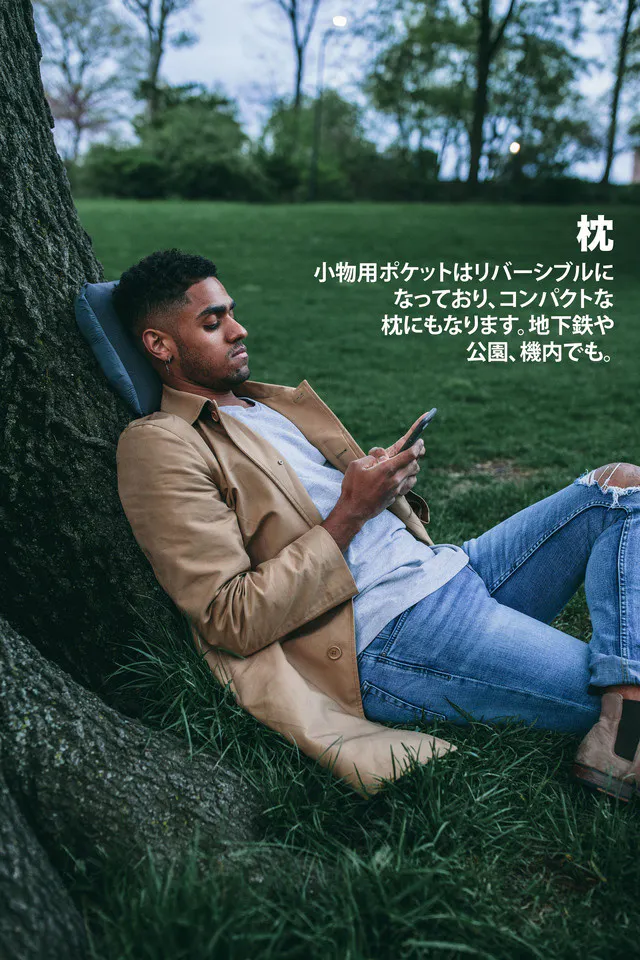 まず言いたいのは、移動って疲れるよね!ってこと。飛行場や、機内、バスの中とか、ちょっとした瞬間にほしい「快適」って、今まで持ち運ぶことができなかったって気づいたんです。長時間の移動やフライトの遅れなど、予期していないこの、つかの間の「快適」を実現するために、この1年半ぼくらは新しい製品を開発してきました。