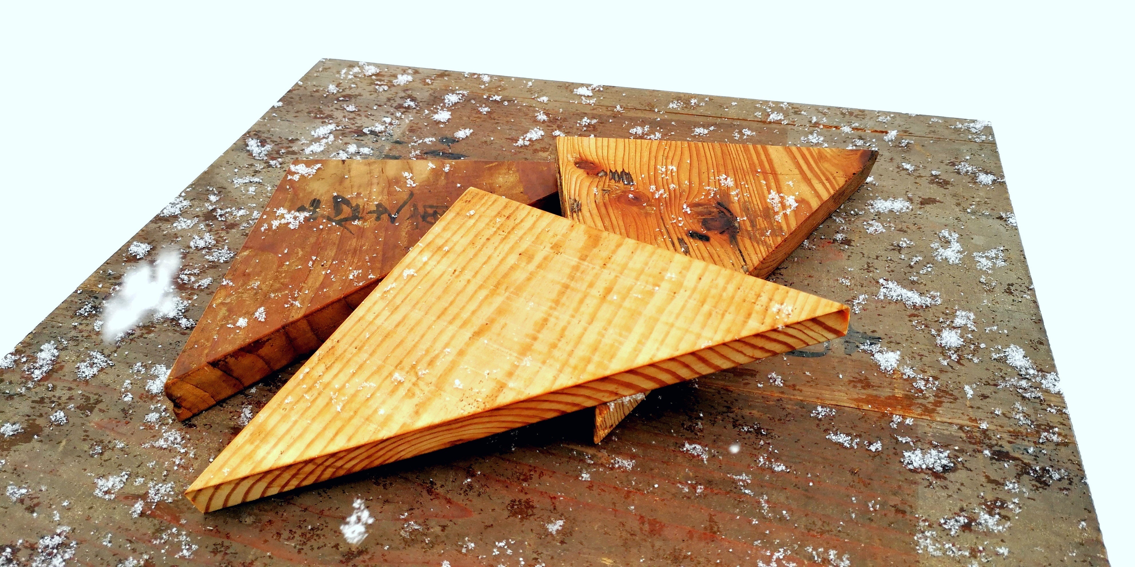 僕たちが丁寧に仕上げたこの三角形の板を、皆様お好きなようにデザインしてください。