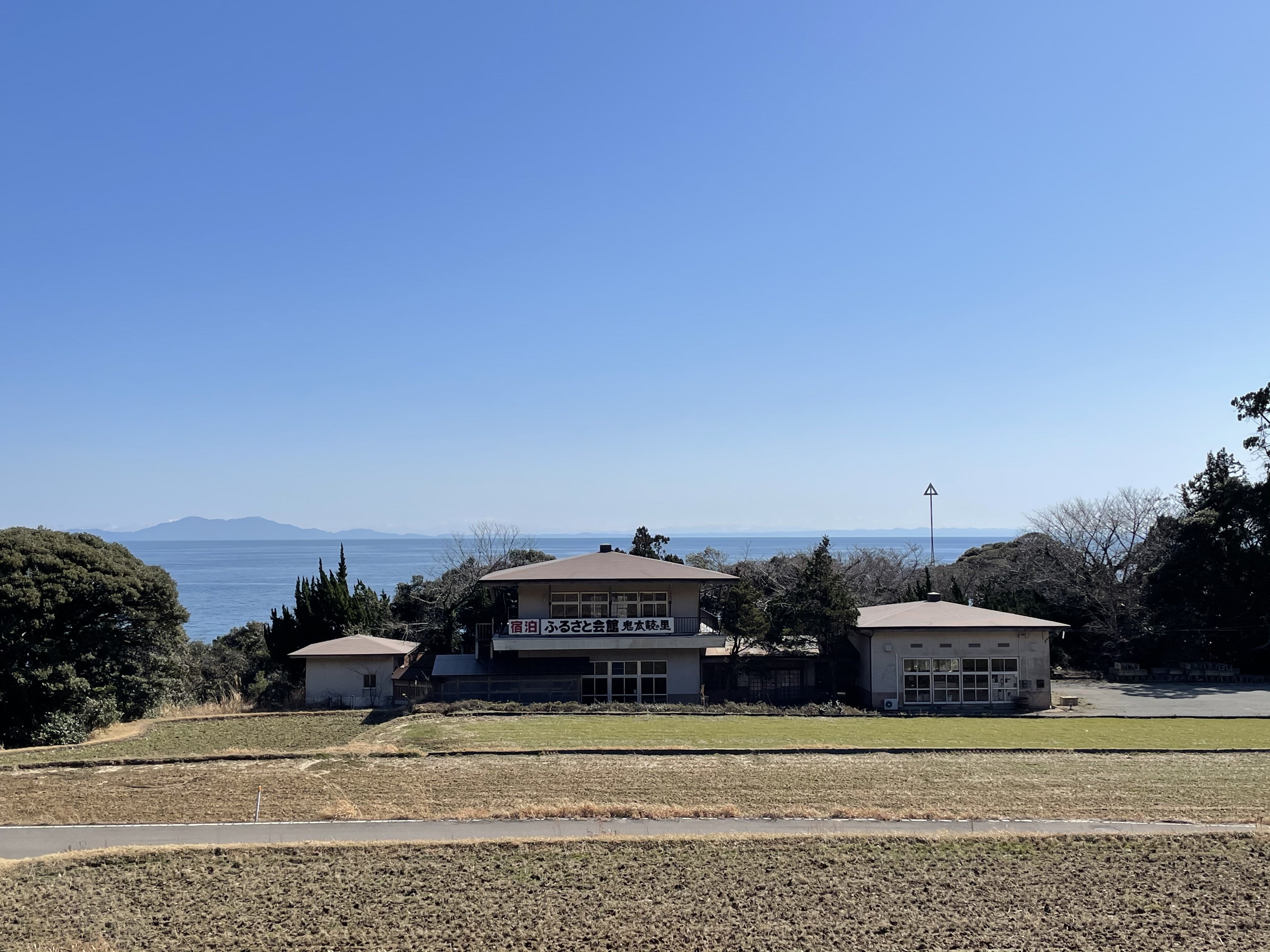 バックには海、目の前には田んぼ、その真ん中に時代に取り残されたかのようにポツンと佇む建物がひとつ。