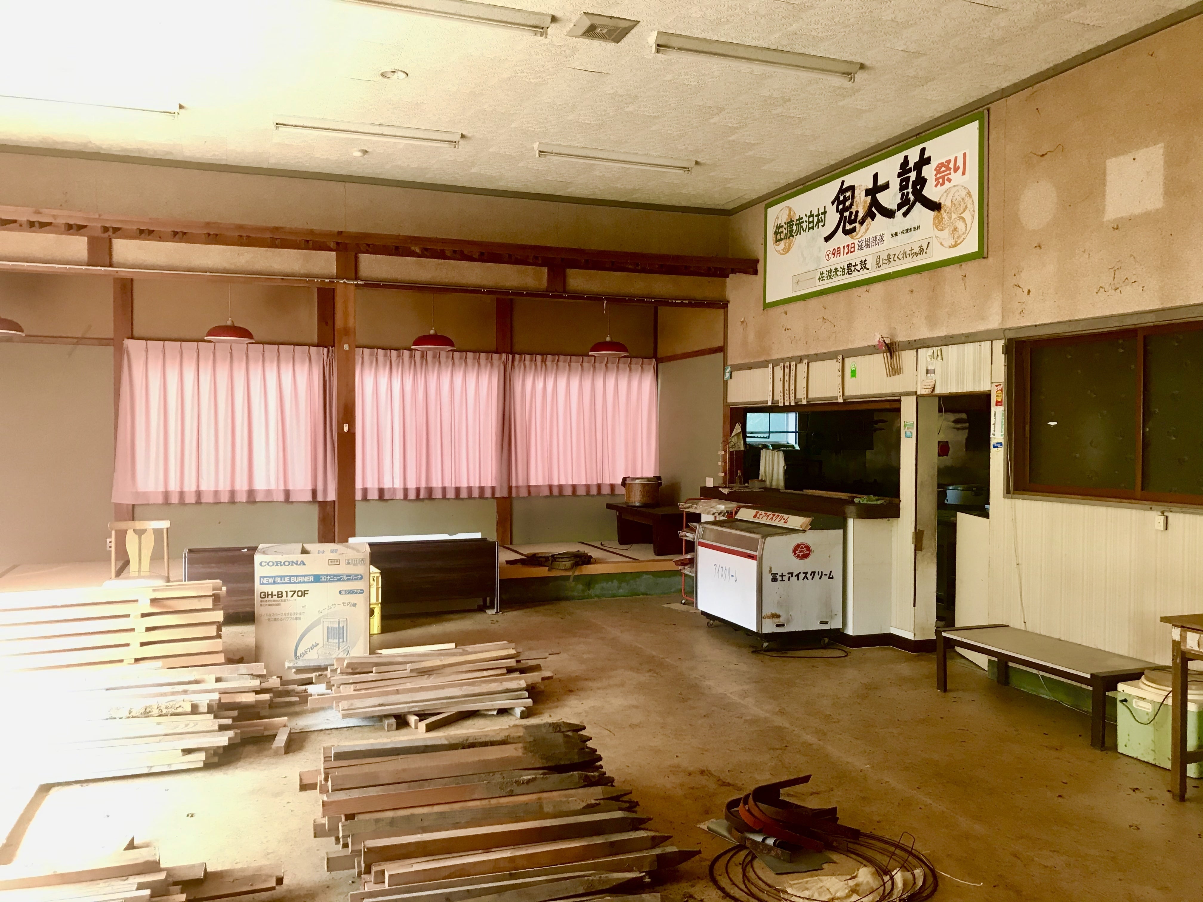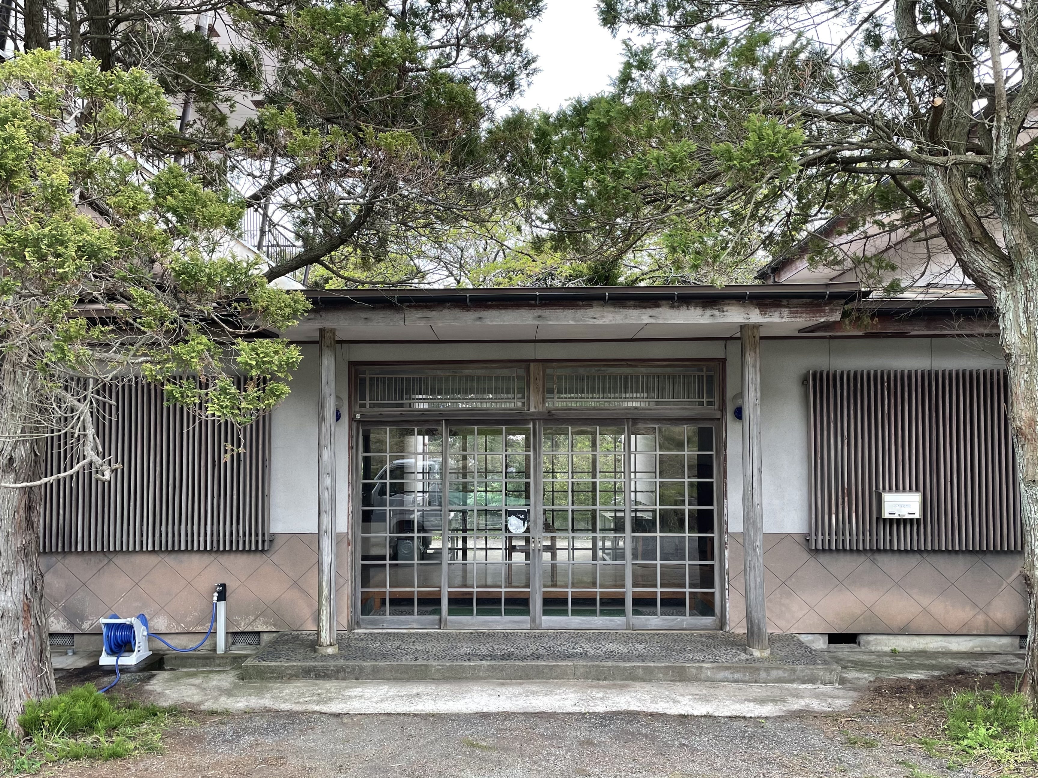 かつて佐渡島の南部にあった赤泊村で地方創生事業の一環として建設された建物です。宿泊、食事処、冠婚葬祭の会場として、地元民に親しまれたのでしょう。