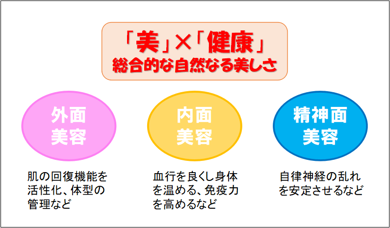 全身の血行促進、自律神経の調整、筋膜リリースを目的としているため、「美」だけでなく「健康」にも効果がある施術メニューになります。(免疫力アップ、冷え症、不眠、慢性疲労、筋肉の凝り・張りなど)