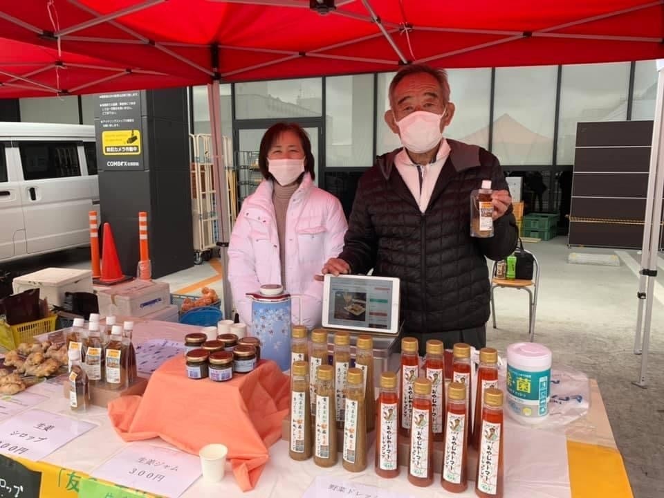 今日は、ご近所のアスパラ農家さんが主導されている対面販売佐賀んメルカートにお誘いを受け始めて参加しました。生姜シロップを試飲していただくと、「美味しい」と返ってくる声がとても嬉しいですね。励みになります。コロナ禍の中で、何が多くダメージを受けたのか!それは小さな企業ですね。とりわけ対面営業を主とする業種ですね。この市場は消滅の危機に瀕しつつも、一方で、人とほとんど口を利かないコンビニやアマゾン等ネット企業がバカ儲けです。このご時勢当面続きそうですので、三方良し対面営業を大事にし、ネット営業も身につけないといけないですね、年寄りは頑張ります。多くの方々に吞んでもらいたいです。これからも応援のほどよろしくお願いします。