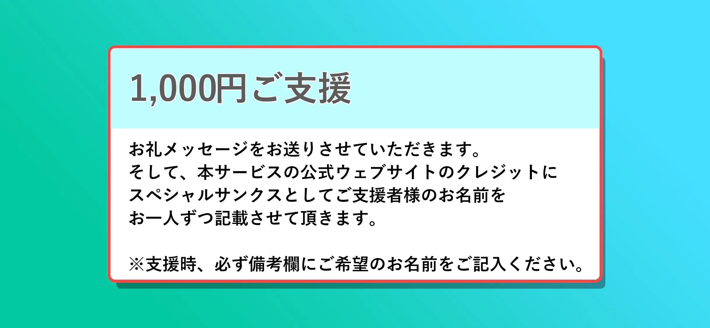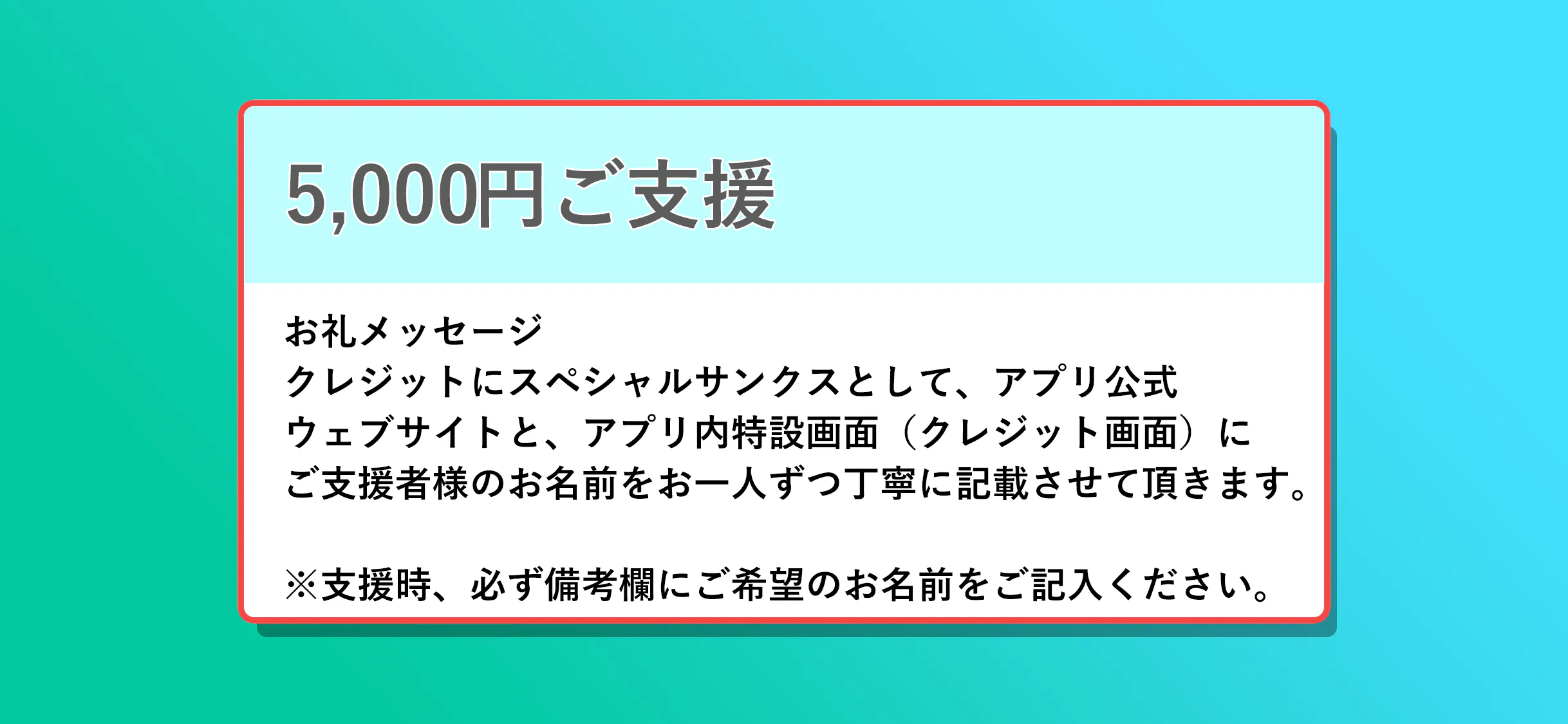 ご支援スポンサーとして法人・団体様のお名前をクレジットに記載させて頂きます。