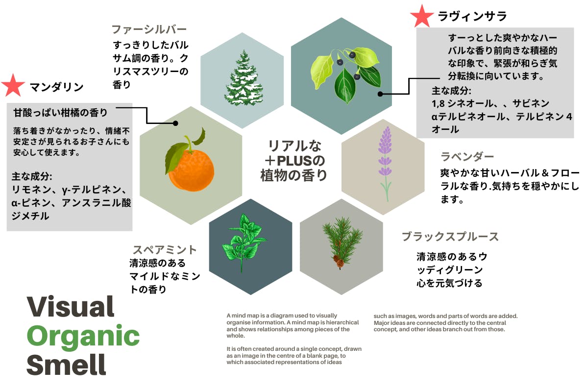 嗅覚と脳のメカニズムに注目し、『香り』に目的を持たせ、パフォーマンスをあげることにこだわるフレグランスを開発します。そしてその香りは人工的に作られた偽物の香りではなく、植物が自ら作り出した芳香成分だけを抽出した天然の精油を使いますので、今まで人工的な香り&市販の香水が苦手な方も、今まで香ったことがあるような懐かしい香りによって『香りの苦手意識』が『好む意識』へと変化していくでしょう。