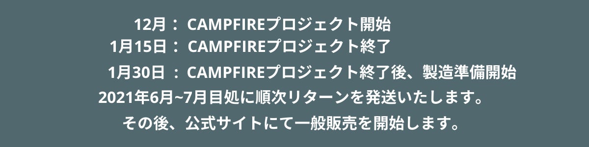 2021/01/15 11:592020年12月中旬このプロジェクトを始めて、新年を迎えあっという間にプロジェクト終了日を迎えようとしています。今日クラウドファンディングは終了しますが、このプロジェクトの本当の意味での商品準備はスタートしていて商品完成まで、ひと一つ、皆様のお手元に届いた時の喜びをイメージしながら取り組みます。最後までどうぞよろしくお願いします。 もっと見る