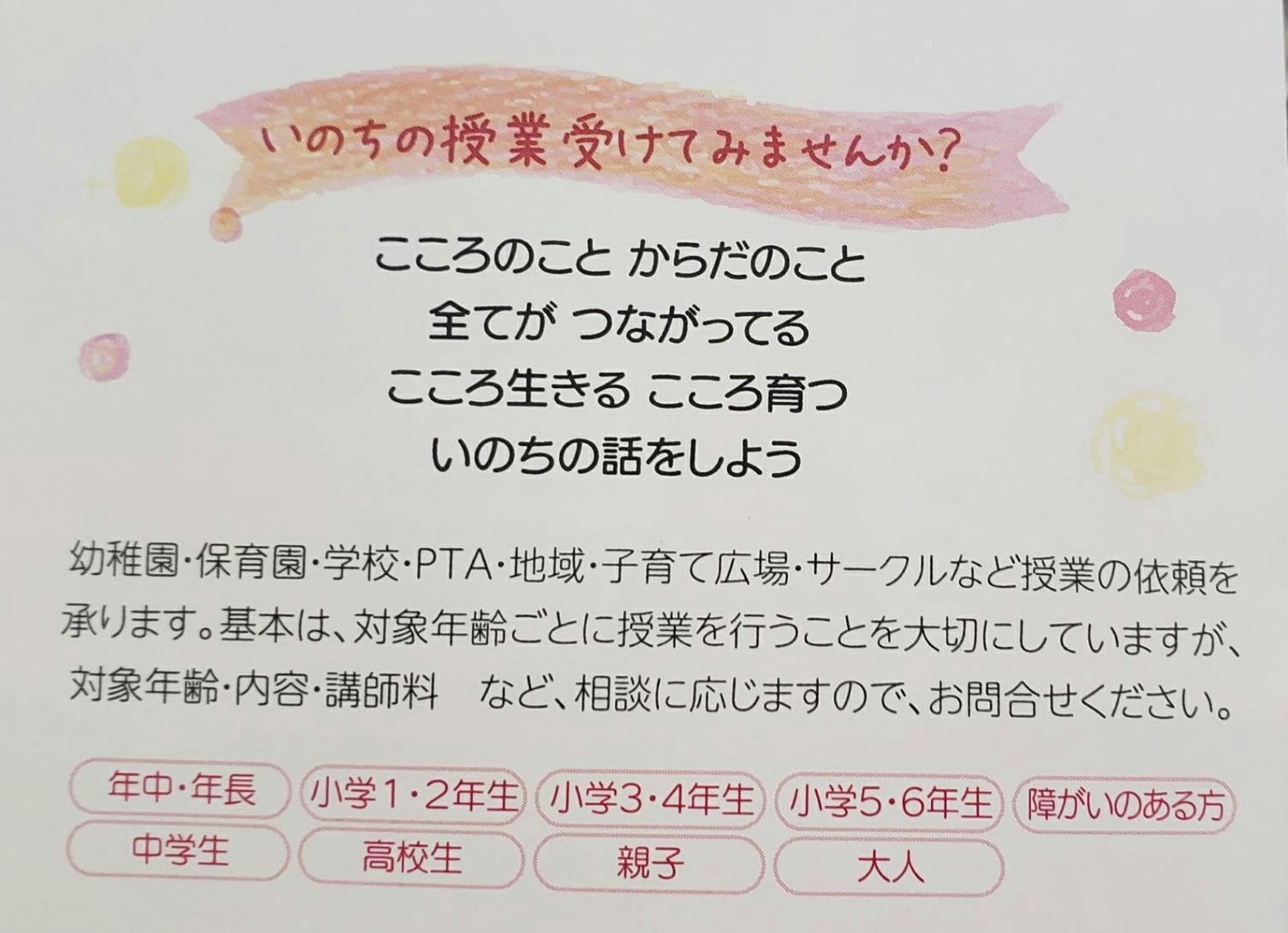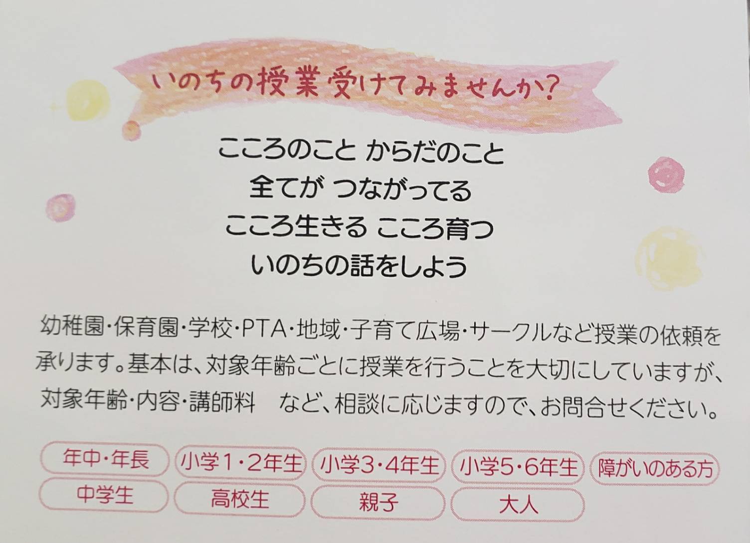 ・いのちの授業(交通費別途必要、日時は相談のうえ決定させて頂きます)
