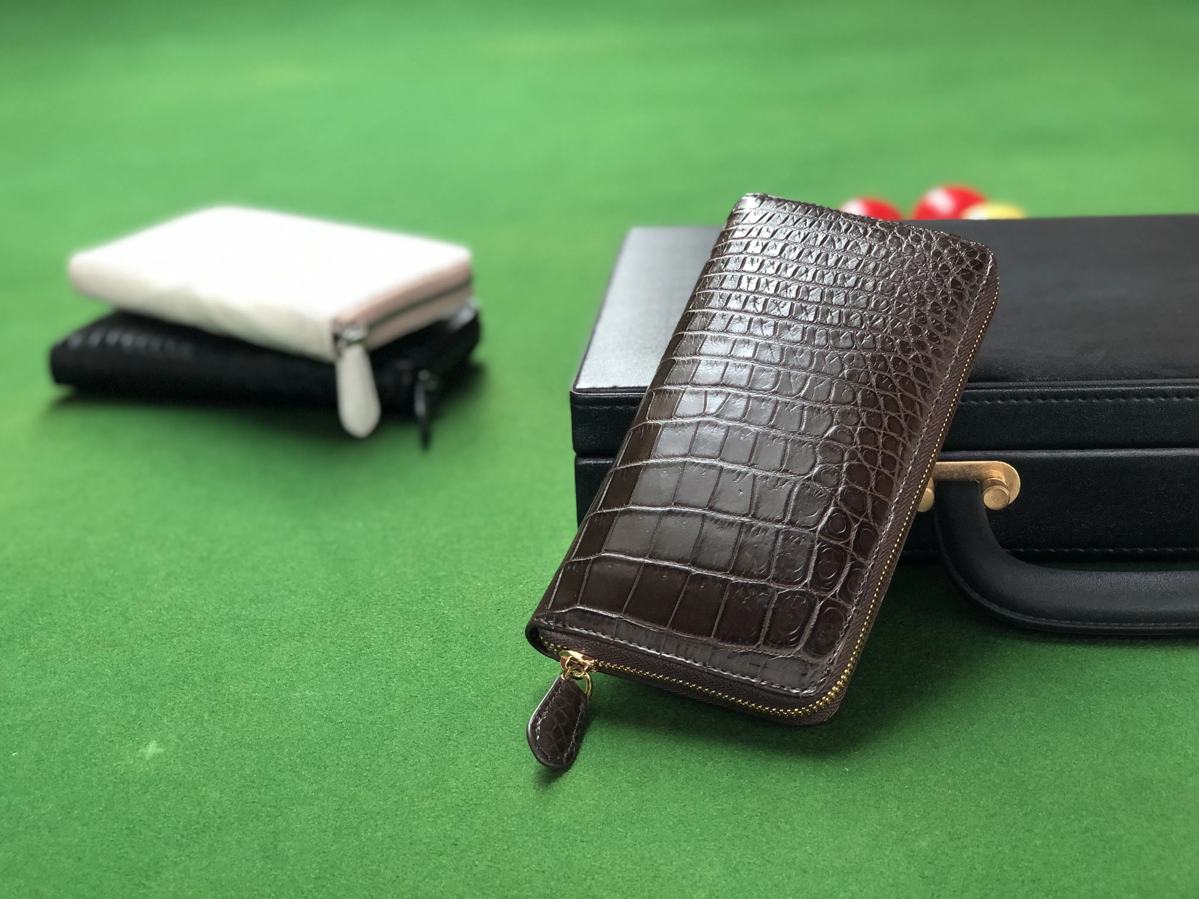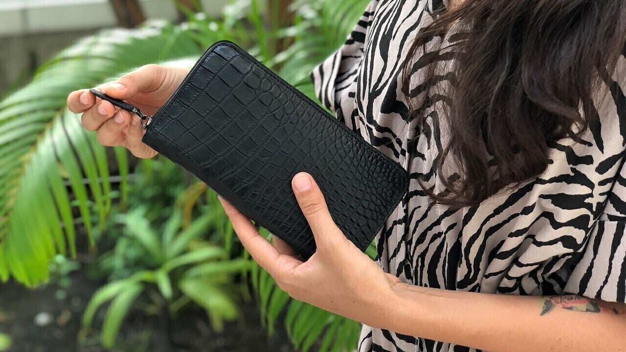 具体的には、タイに住む友人が働く老舗クロコダイル製品工場の経営をサポートすべく、彼らが自信を持って製造する最高級クロコダイル(シャムワニ)革の長財布を購入して頂けたらと考えました。