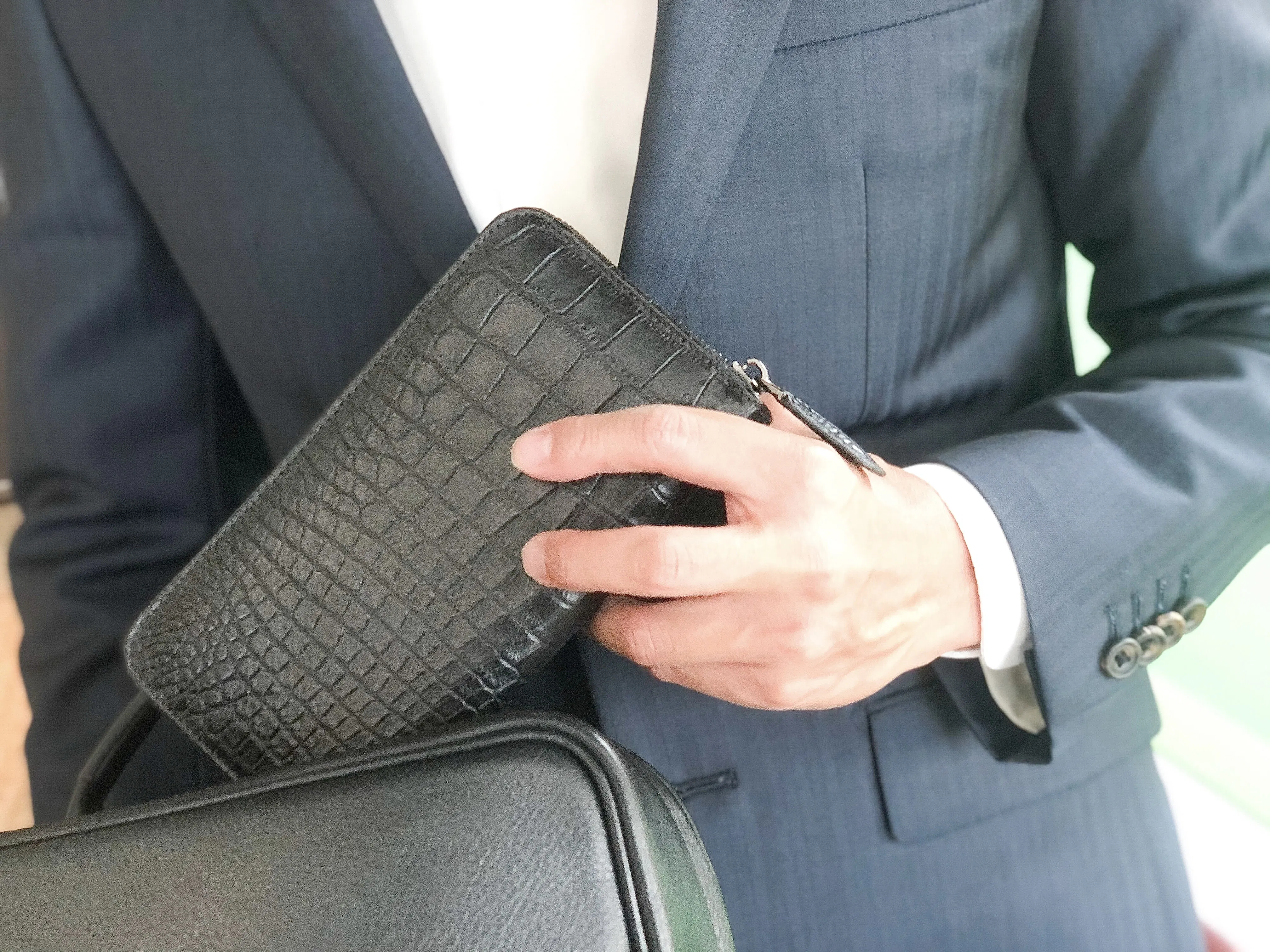 クロコダイル革にはマット加工を施し、使うほどに味のある表情に変わっていきます。