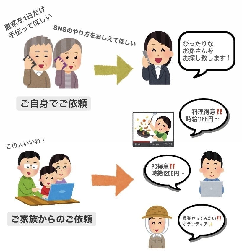 また遠く離れた家族が孫を派遣するような形でサービスもご利用できます。