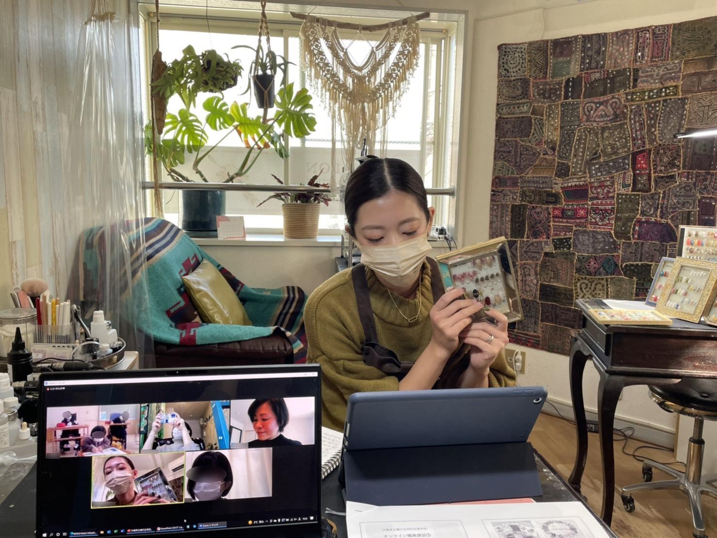今回は運営スタッフもネイルサロンにお邪魔し、中継スタイルで講話を行いました。色鮮やかなネイルの見本を画面越しに見せていただくなど、リアルな現場の雰囲気を味わうことができました!