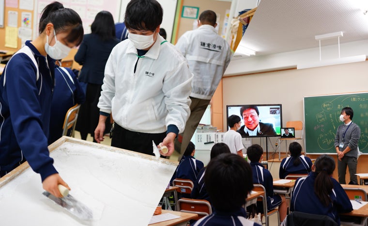 教室開催ならではのワークショップで、”左官職人の仕事”を体験させていただきました。世の中にどれだけの会社があるのかなど、生徒の知らない”社会”の成り立ちについても教えていただき、視野が広がった生徒も多かったのではないでしょうか。
