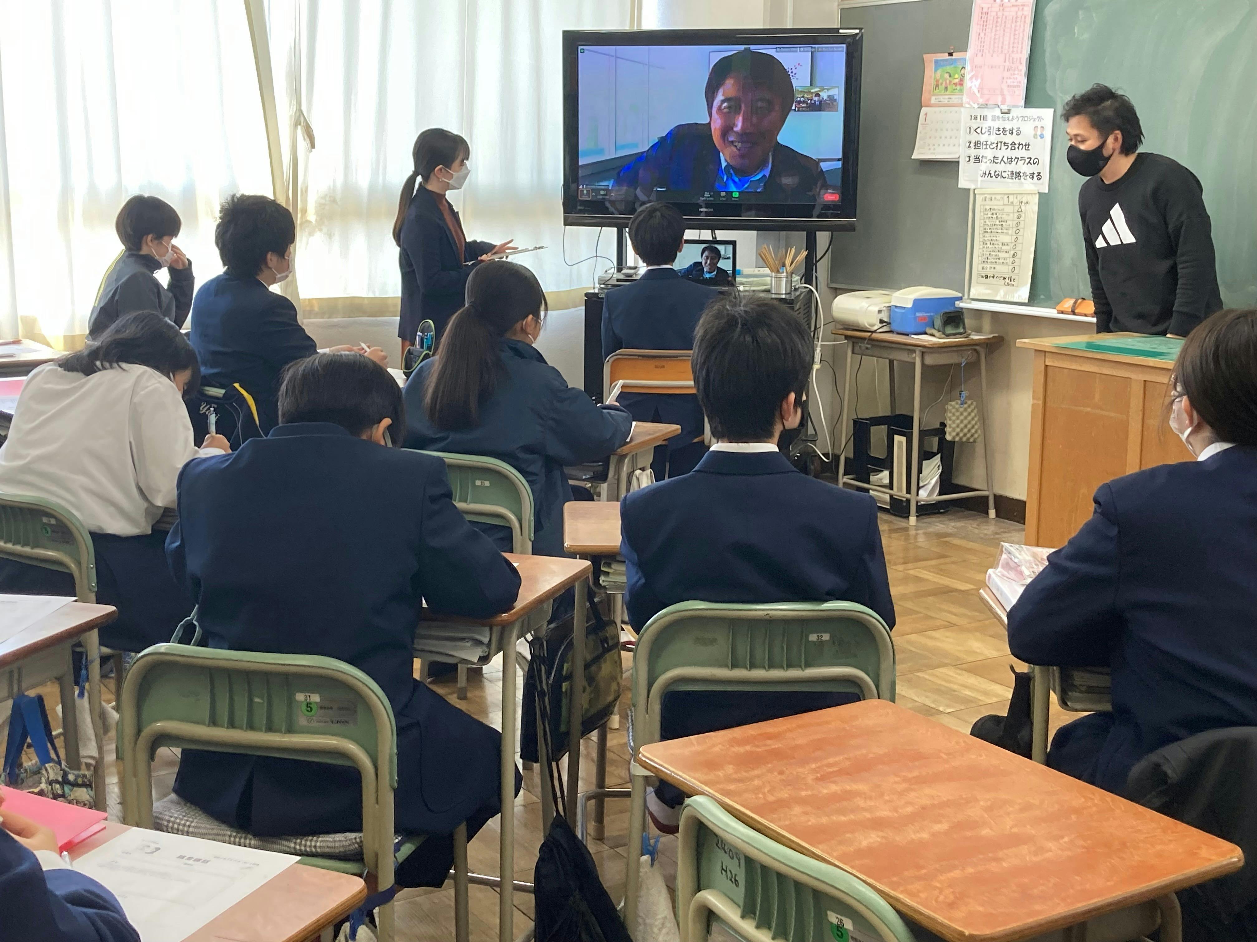 この度は、オンラインでの職業講話実施にあたり、ご協力いただきありがとうございました。コロナ禍でさまざまな行事が中止や延期を余儀なくされる日々を生徒が過ごしている中、限られた予算でのオンライン講話開催へ向け、ご相談させていただきました。事前学習として、みらい百花の冊子や動画での職業紹介によって生の声を聞き、その上でワークシートでさらに一歩深く考えさせるなどのご提案をいただいたことで、本番当日も生徒が「自分事」として参加することができ、将来へ向けての大切な時間となりました。