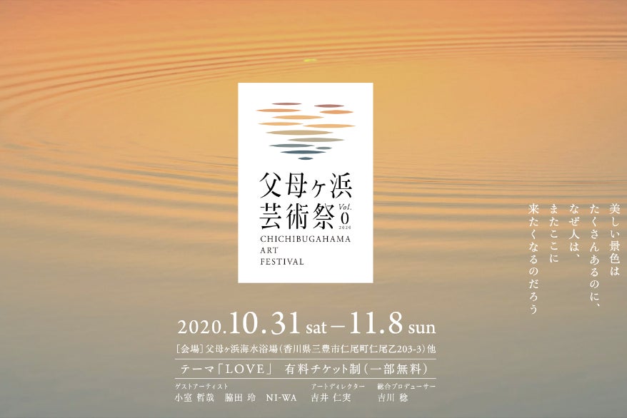 父母ヶ浜芸術祭vol.0のオープニングライブとして、2020年10月31日(土)16:00から小室哲哉さんの単独ライブを行います。「日本のウユニ塩湖」「日本一の夕陽」と言われる父母ヶ浜の自然が織りなす絶景に演出を施します。大自然と電子音の交わりを体感して下さい。