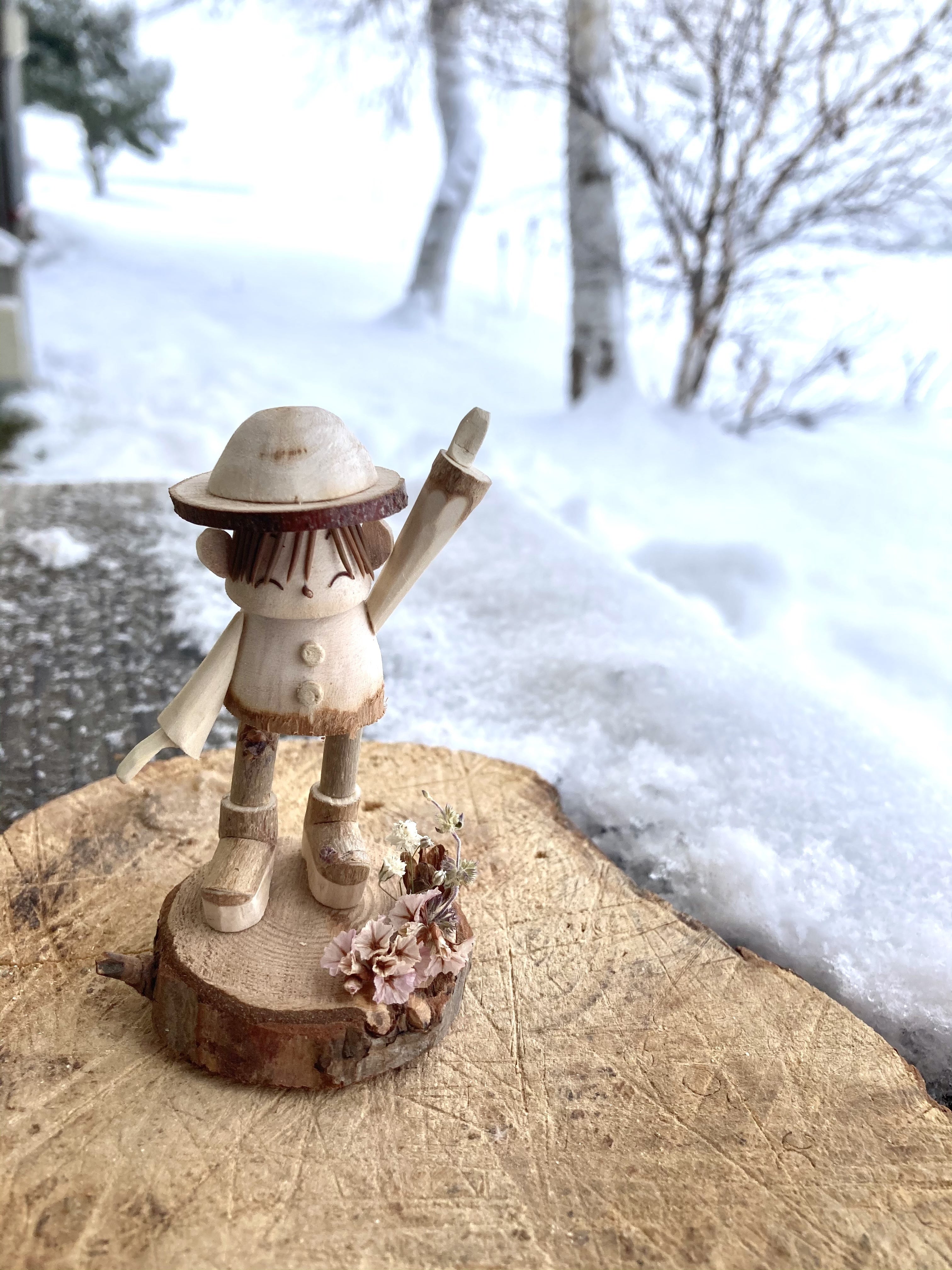 こんにちは。はれるやはうすです。今日の中富良野は風が強く、このところ吹雪の日が続いております。地元の皆様、中富良野付近にお立ち寄りの皆様におかれましては、畑地帯の吹き溜まりなどに充分ご注意いただければと思います。さて、この雪の中でこちらの真ん中に写っている白樺の木、朽ちているのは画像でも見えるでしょうか?細い枝はほぼ全て、折れて落ちてしまっています。はれるやはうすの木人形はこのように、このままでは朽ちてしまう木や、風や雪で折れてしまった木などを使用して作られています。役目を果たした森の木々を、ハンディキャップを抱えた利用者さん達がその手で蘇らせています。その姿は立派な木工職人。都合上楽団人形の画像を全てお見せすることができませんが、腕を磨き続ける職人さんたちの日々の努力に比例して、素晴らしい人形が生み出されています。それぞれに抱えるものがあり、それぞれに生活があります。その中で、自分が職人である事を誇りに成長し続ける姿には日々驚かされます。それぞれの工夫やアイデアが直接作品に反映され、技術は上昇し続けています。その姿にハンディキャップがある事など感じる余地はありません。「この職人さんたちの高い技術を守りたい。」という強い思いがきっかけで今回のクラウドファンディングを立ち上げました。残り僅かな募集期間ではありますが、最後まで皆様の温かいご支援を是非お願い申し上げます。森の楽団人形は画像で多くをお見せできないため、是非富良野にお越しいただき直接その目でご覧いただきたいと思います。森の楽団人形は富良野プリンスホテルのニングルテラス内「森の楽団」にて販売しております。大地で役目を果たした木々が見事に蘇り、オーケストラとなった姿を是非お楽しみください。