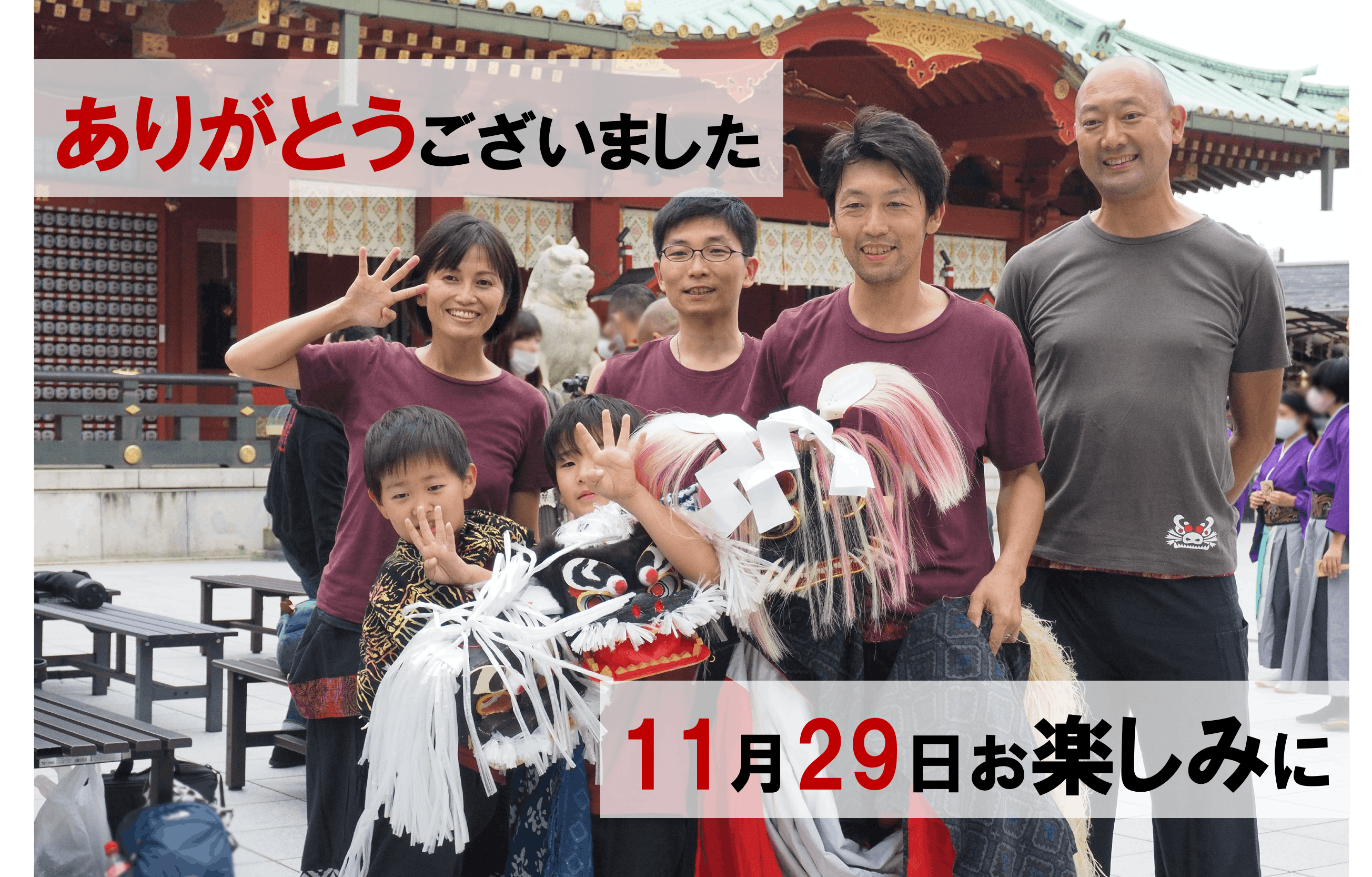 クラウドファンディングは終了しましたが、11月29日の獅子舞の奉納とライブ配信について進捗を報告してまいりますので、引き続きよろしくお願いいたします。