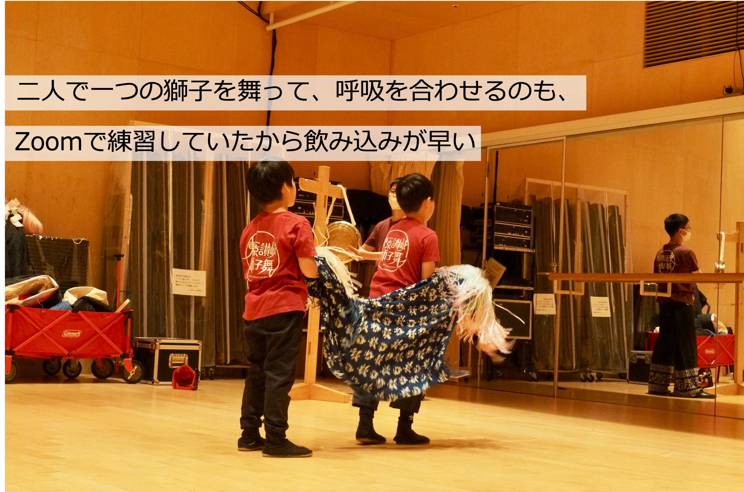 これらの経験から、子どもたちは大人よりも適応能力があり、オンラインで獅子舞の練習ができることに気づきました。それから毎週水曜日にzoomを使って、オンライン練習を行うようになりました。
