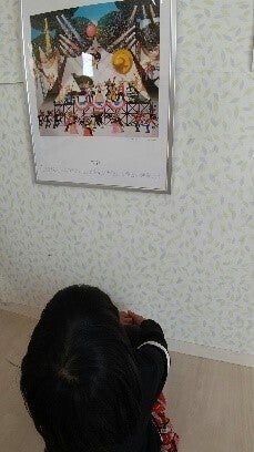 「これ、どうやって描いてるんやろなー」等と言葉にしたり、触っている子どもの姿もありました。こうして、子ども達は新しい物を目にし、触れて、世界を広げ成長しています。