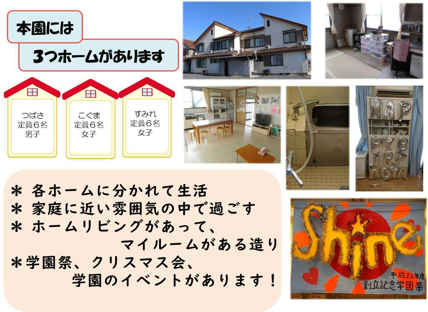 児童養護施設 守山学園は、滋賀県の中でも小さな施設ながら敷地内に3つのホーム、地域に2つの地域小規模児童養護施設を設け、子ども達が親元を離れ、施設職員とともに過ごしています。