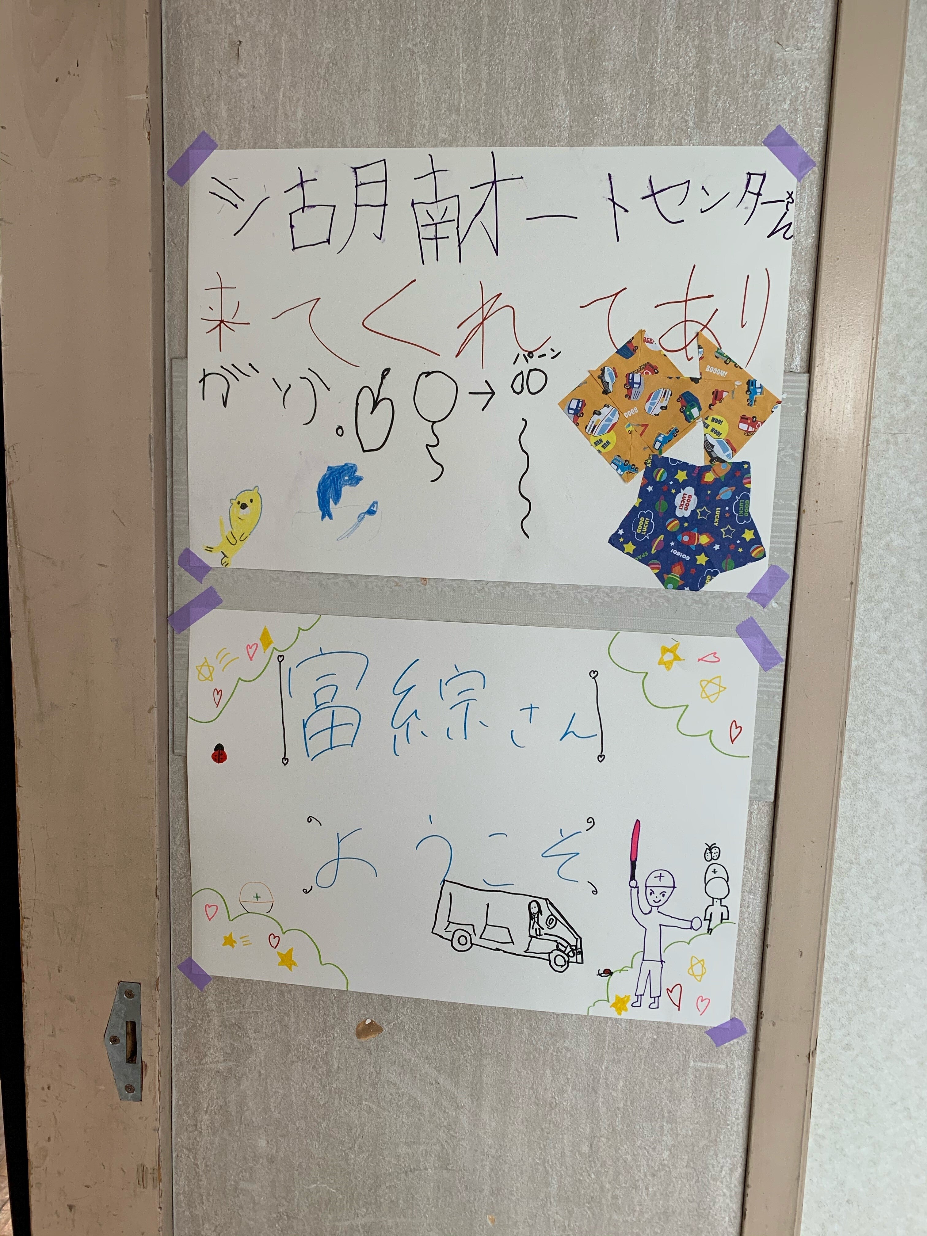 (有)富綜、㈱たかはし、㈱湖南オートセンター、(有)鉄人工房マツヤ、県社協の方々がご協力くださいました。子ども達にはお迎えの準備のお手伝いを。職員はなれないフェイスシールドにあたふた(笑)